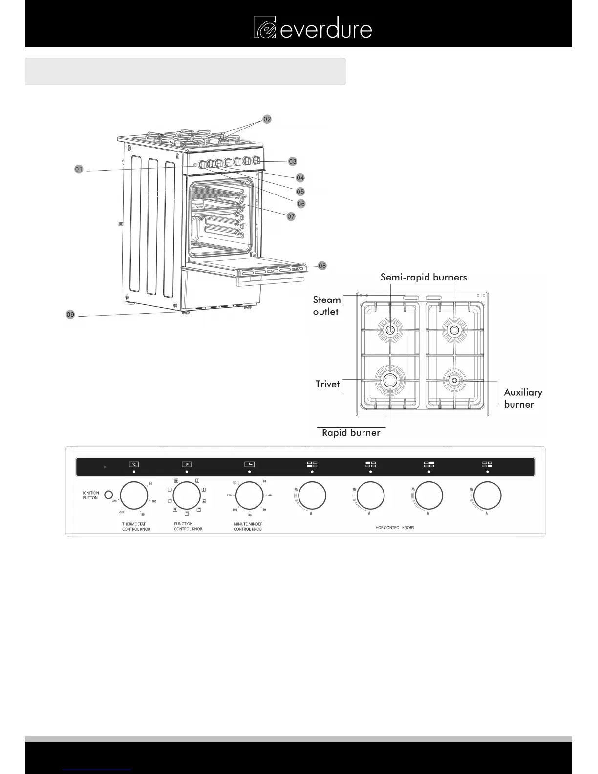 06) Oven temperature control knob.