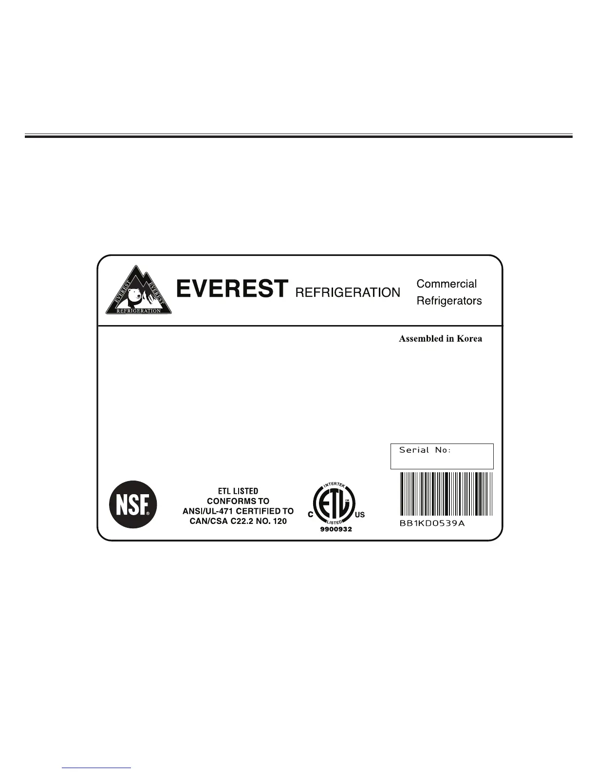 numbers and refrigeration data of your Everest product. This tag is located in the upper left or right