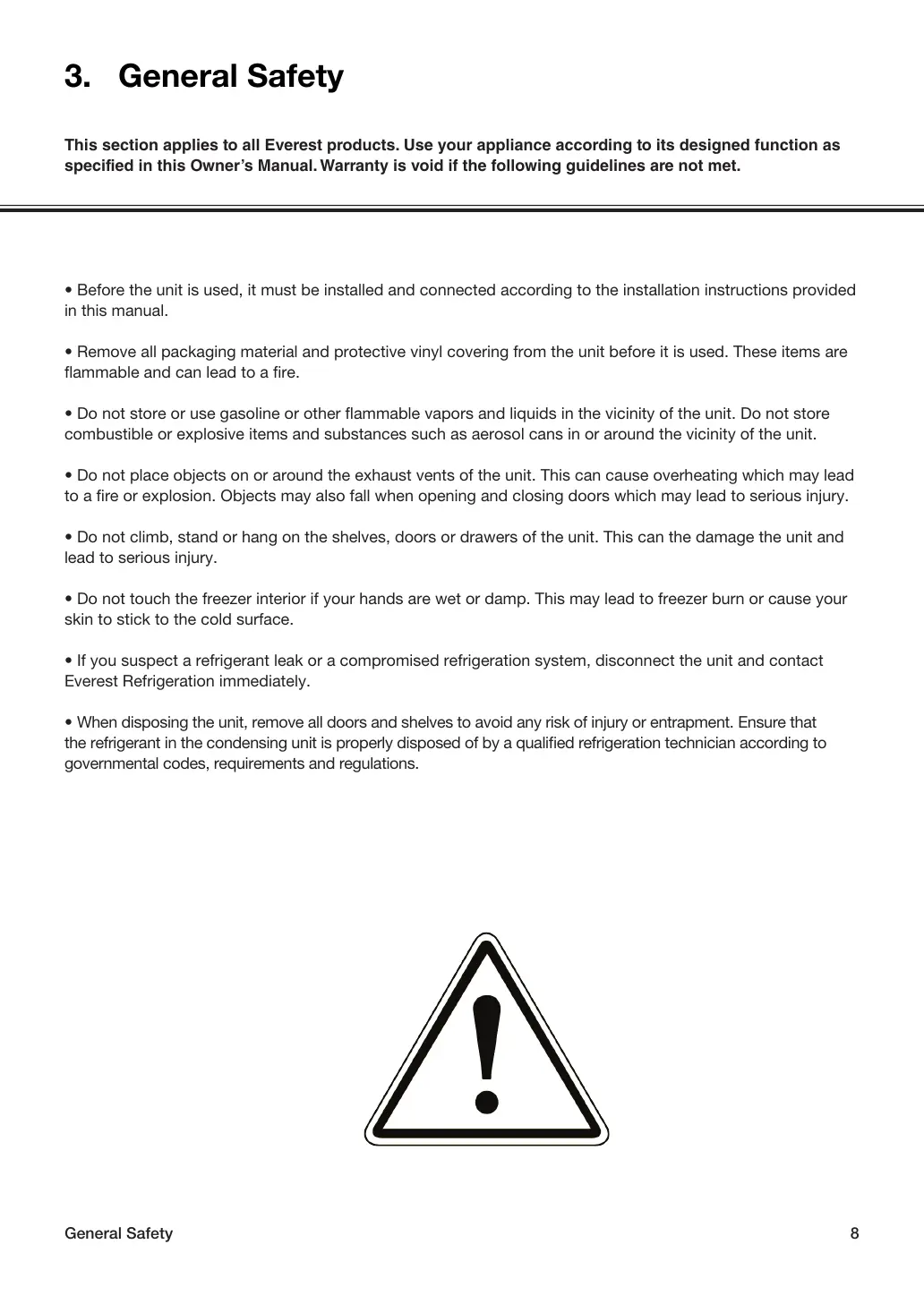 This section applies to all Everest products. Use your appliance according to its designed function as