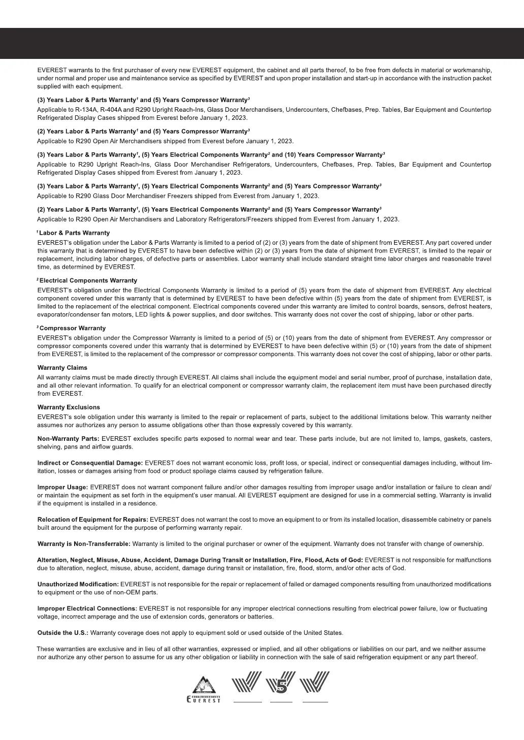 Everest ESWQ2D2 - Warranty Certificate