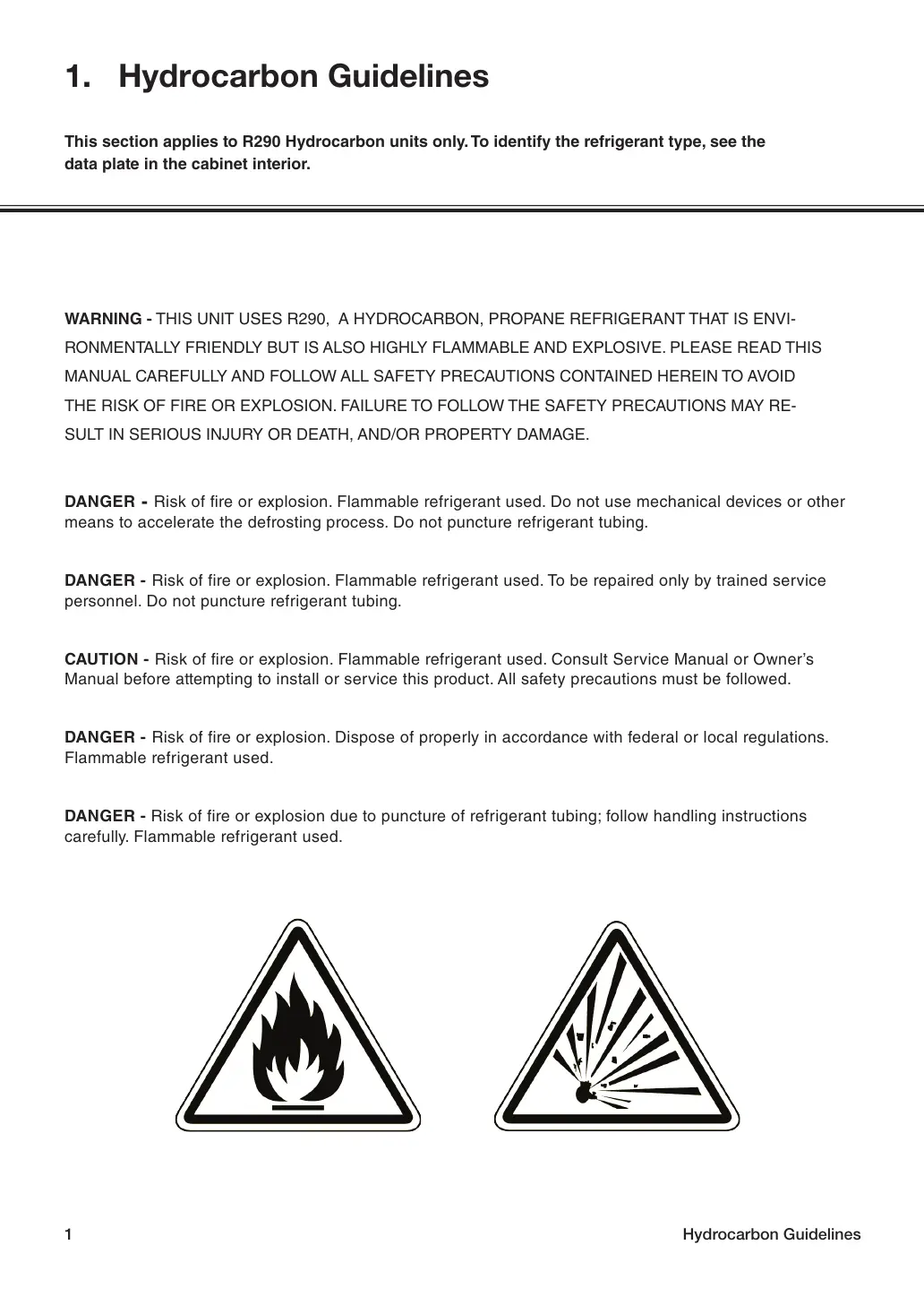 WARNING - THIS UNIT USES R290, A HYDROCARBON, PROPANE REFRIGERANT THAT IS ENVI-