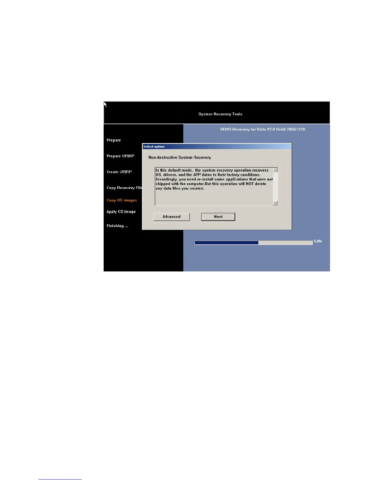 recovery mode”. To choose “Destructive” please click Advance