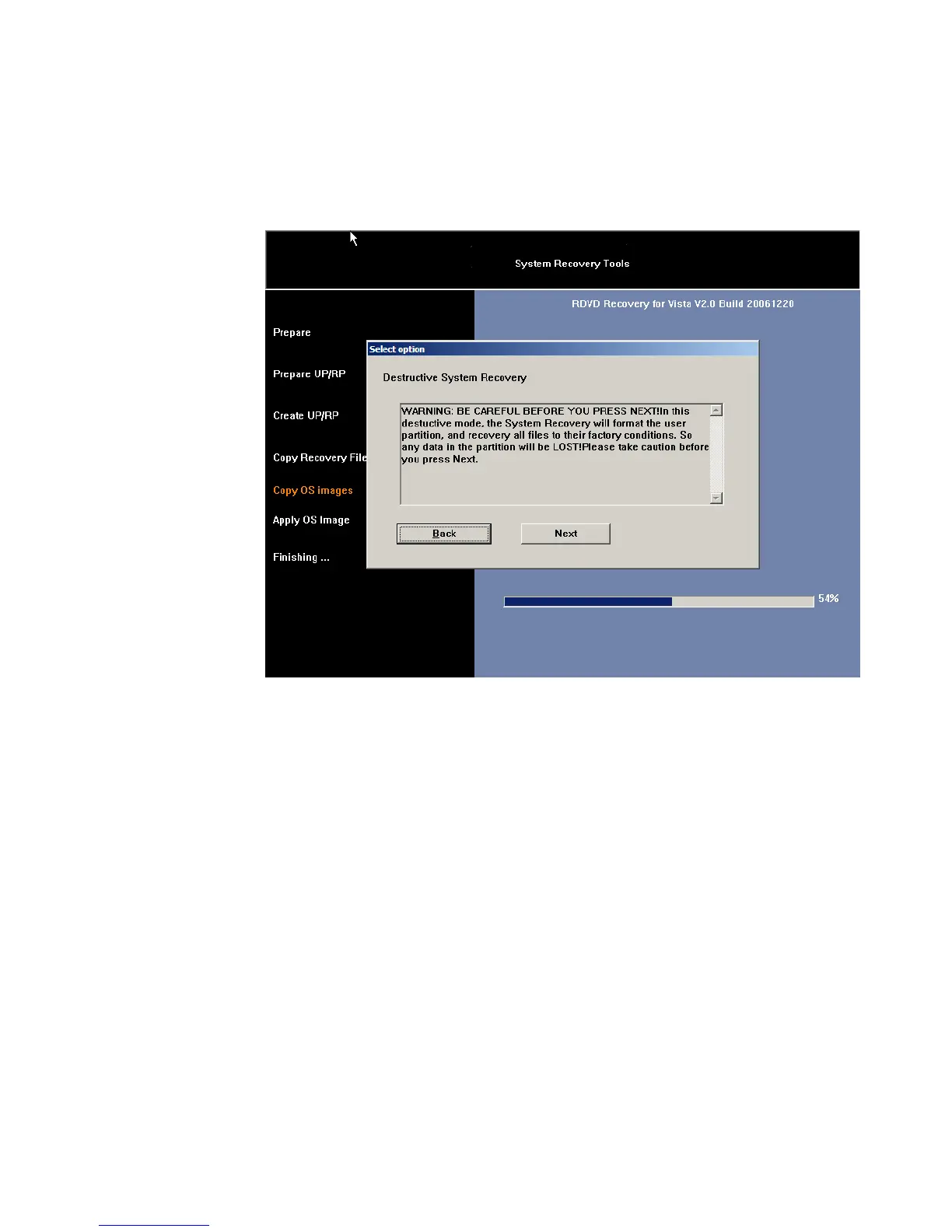 4. When the ”Destructive” option is chosen , please click Next.