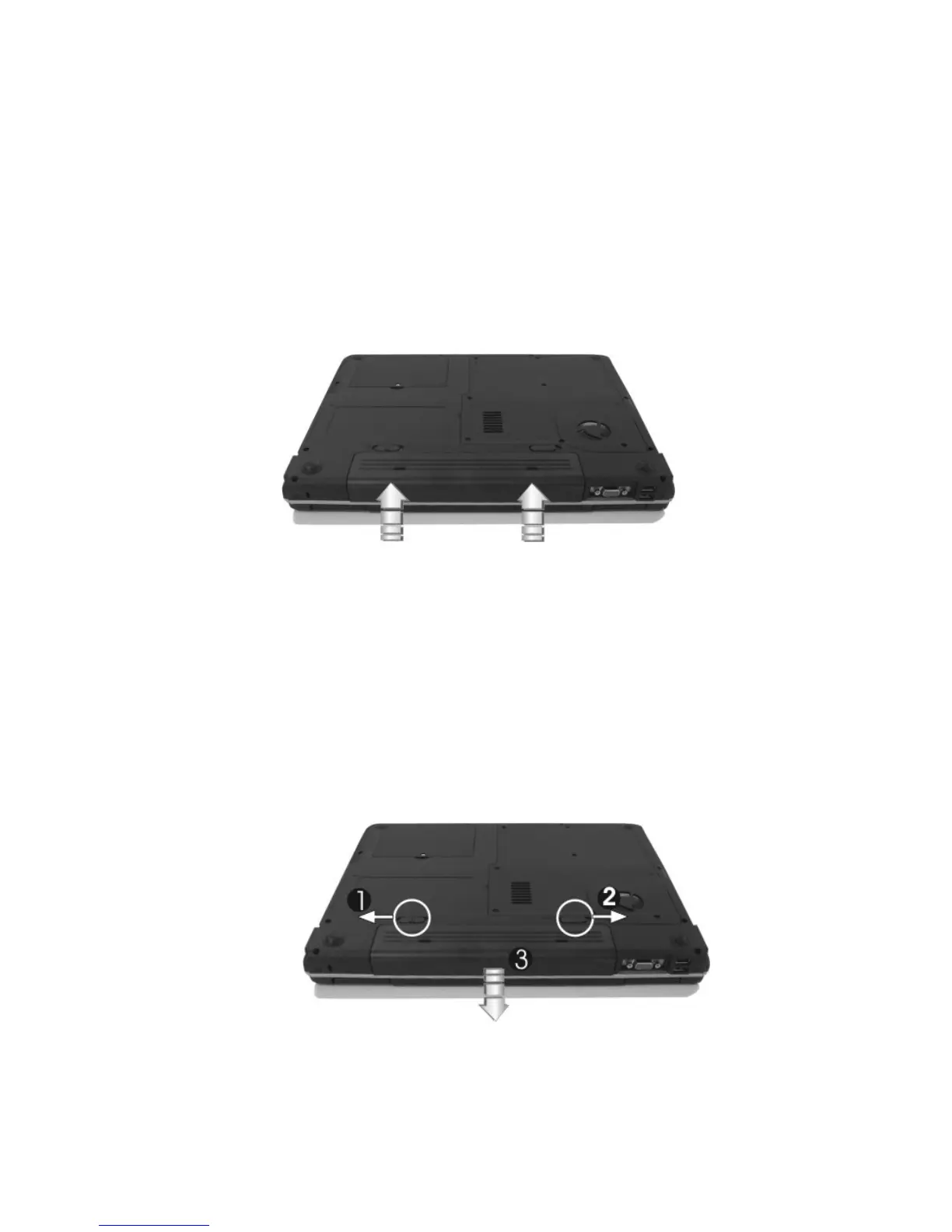 To remove the battery pack, make sure the computer is turned off, unplugged