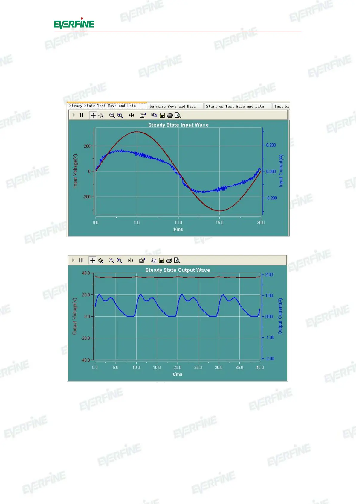 the interface. It will display the wave form of input/output voltage and current in