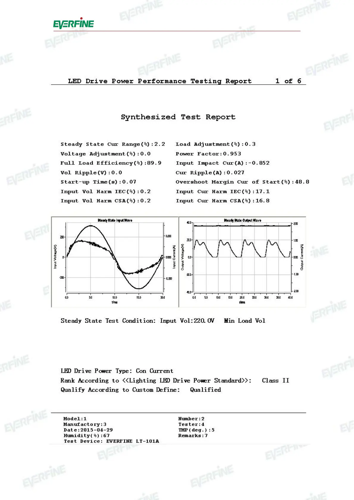 Typical test reports of LT-101A.