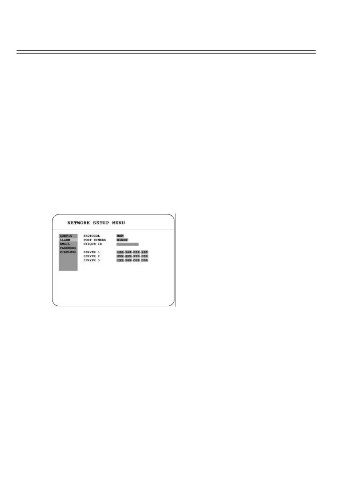 (3) UNIQUE ID: setting the ID number of your DVR to Alarm server.