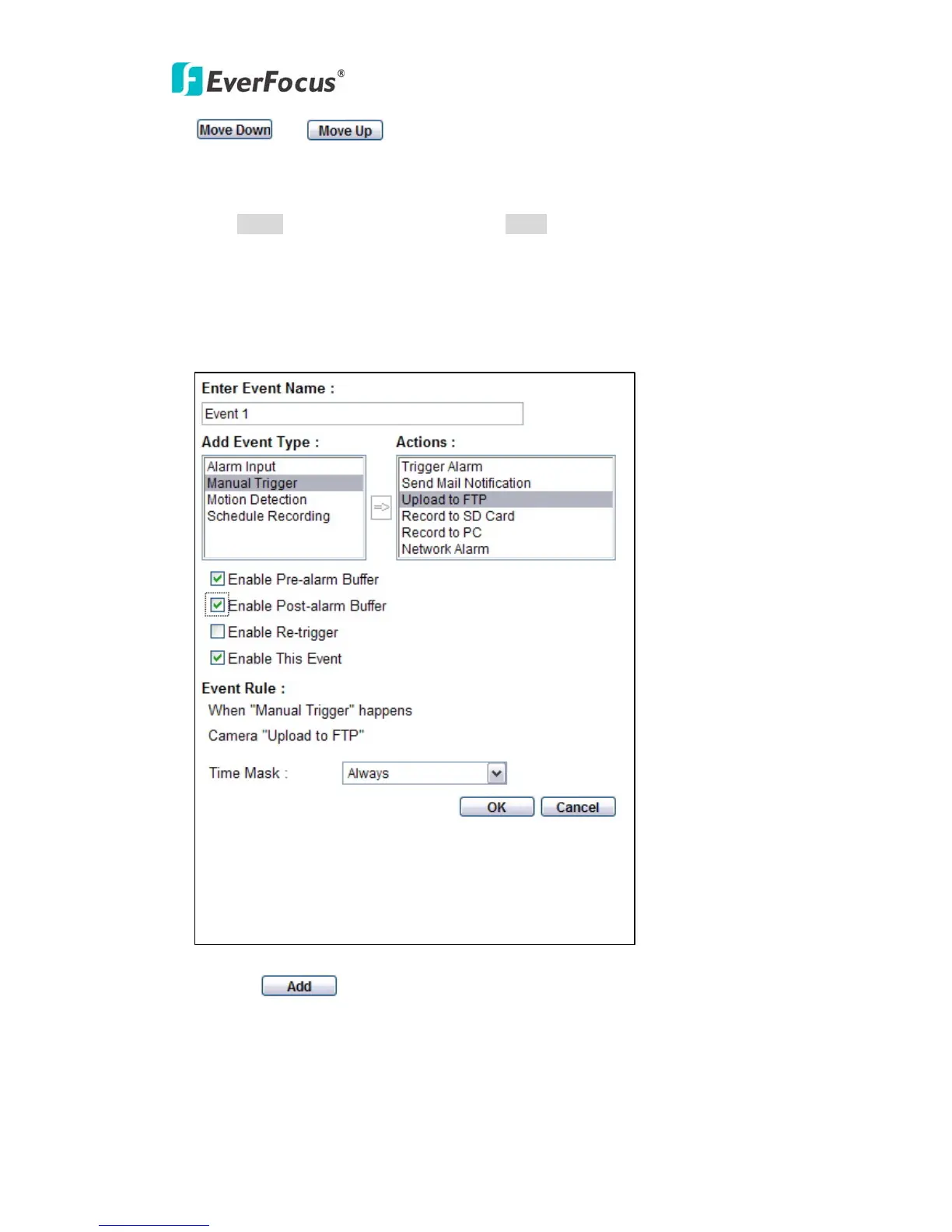 5. Check “Enable Pre-alarm Buffer” and “Enable Post-alarm Buffer”. For pre-and