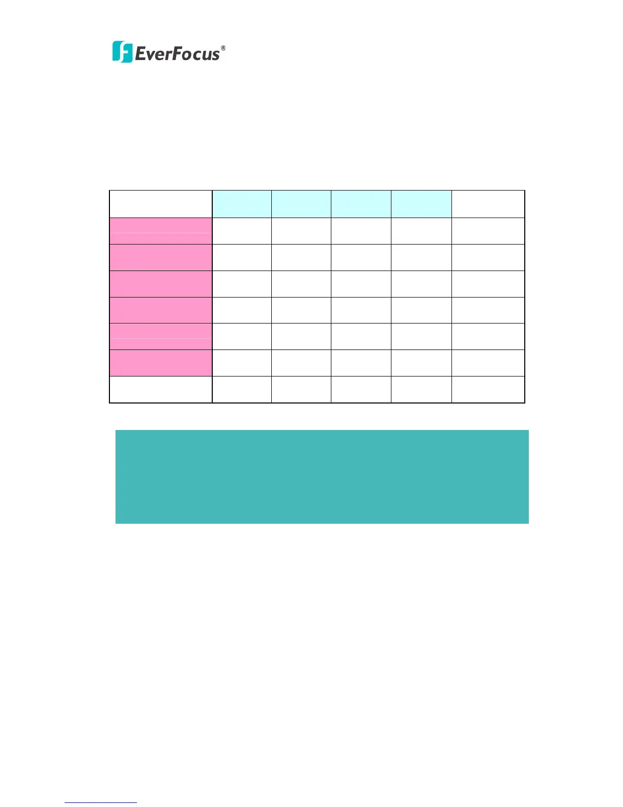 This table describes how to setup action types and event type.