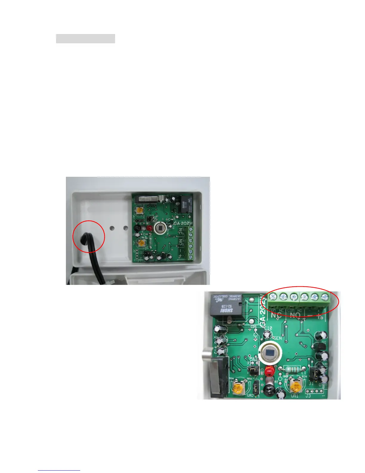 diameter hole for the power and video cables. Open the PIR detector casing by gently pulling
