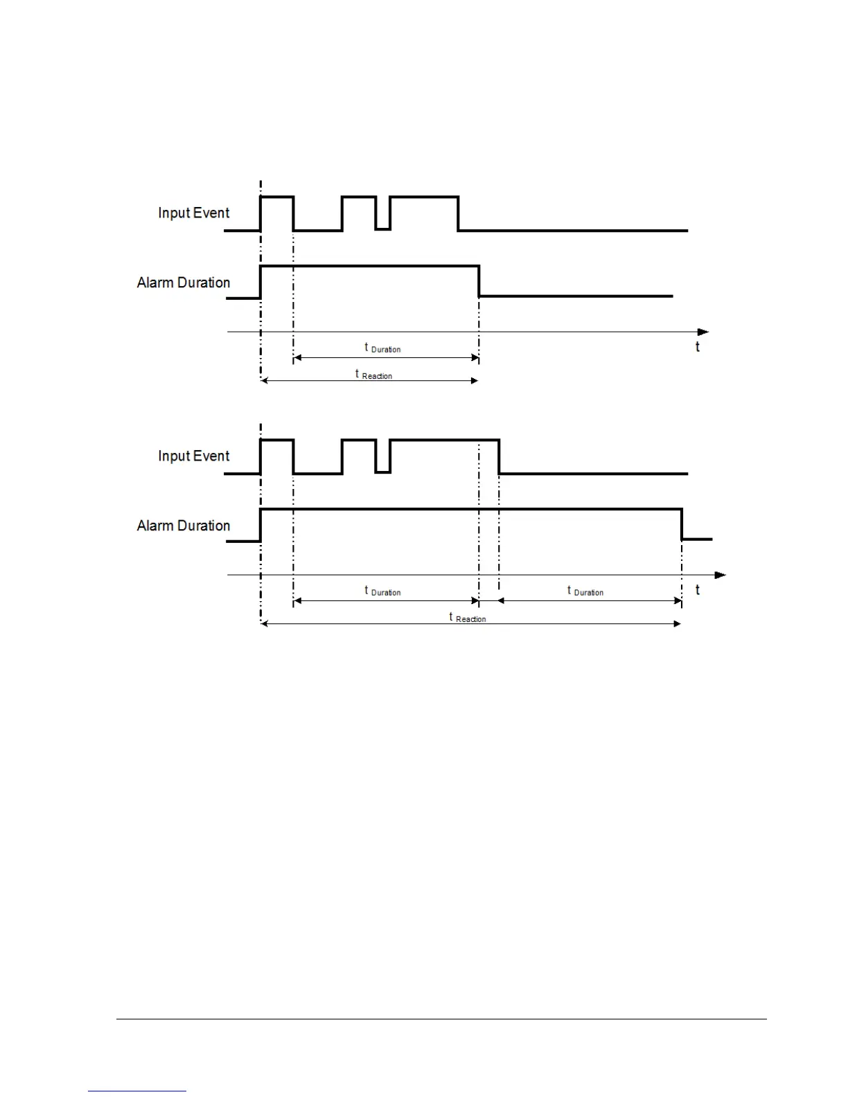 : Resulting duration for this alarm mode, related to event record, alarm outputs, OSD message,
