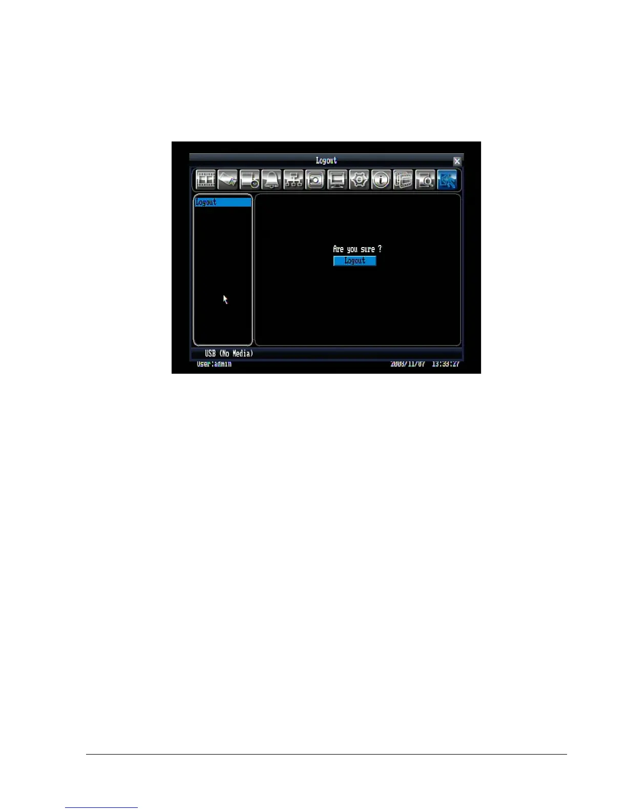 Press “Logout” button when you are ready to logout from the system. You will need to login again before
