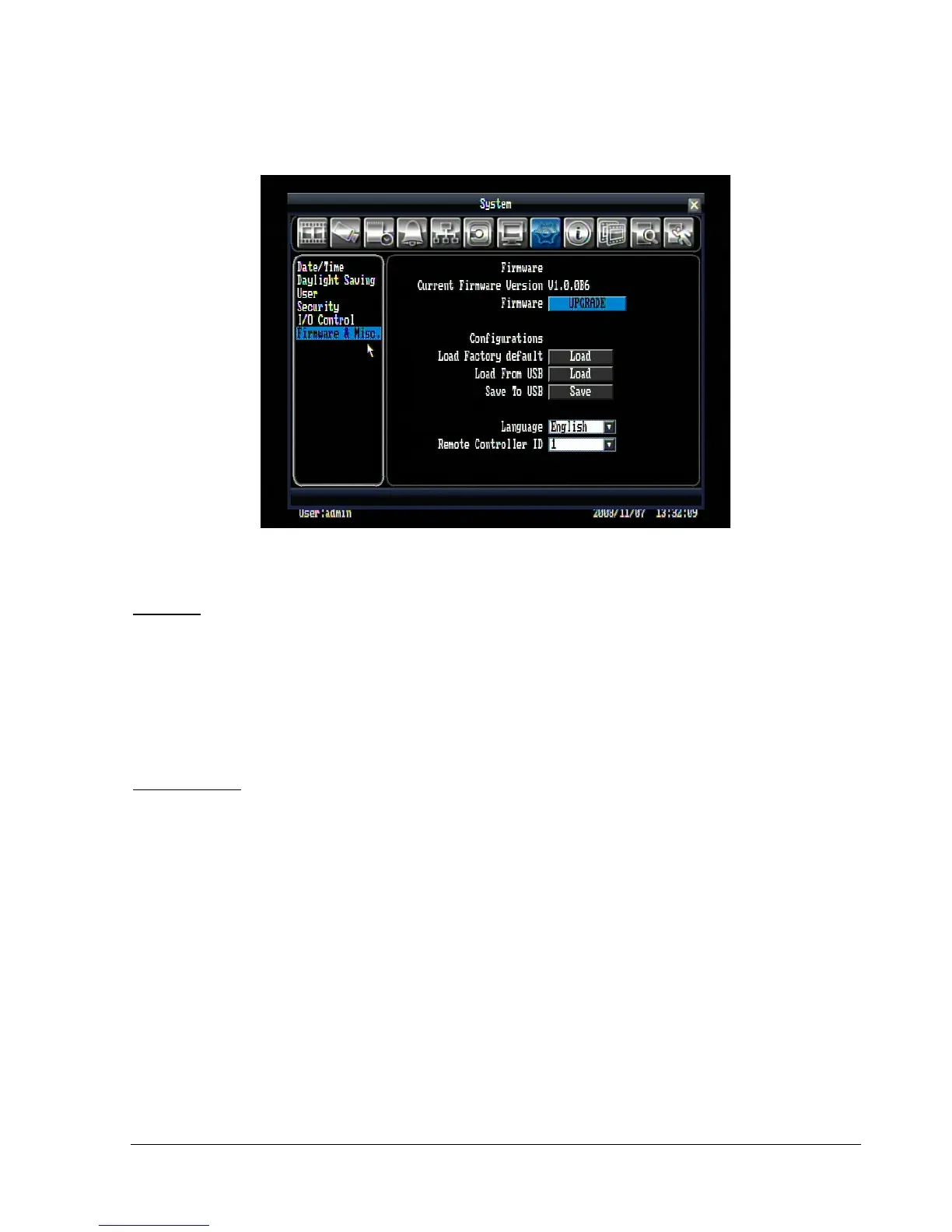 Figure 5.28 (System Menu – Firmware & Misc.)