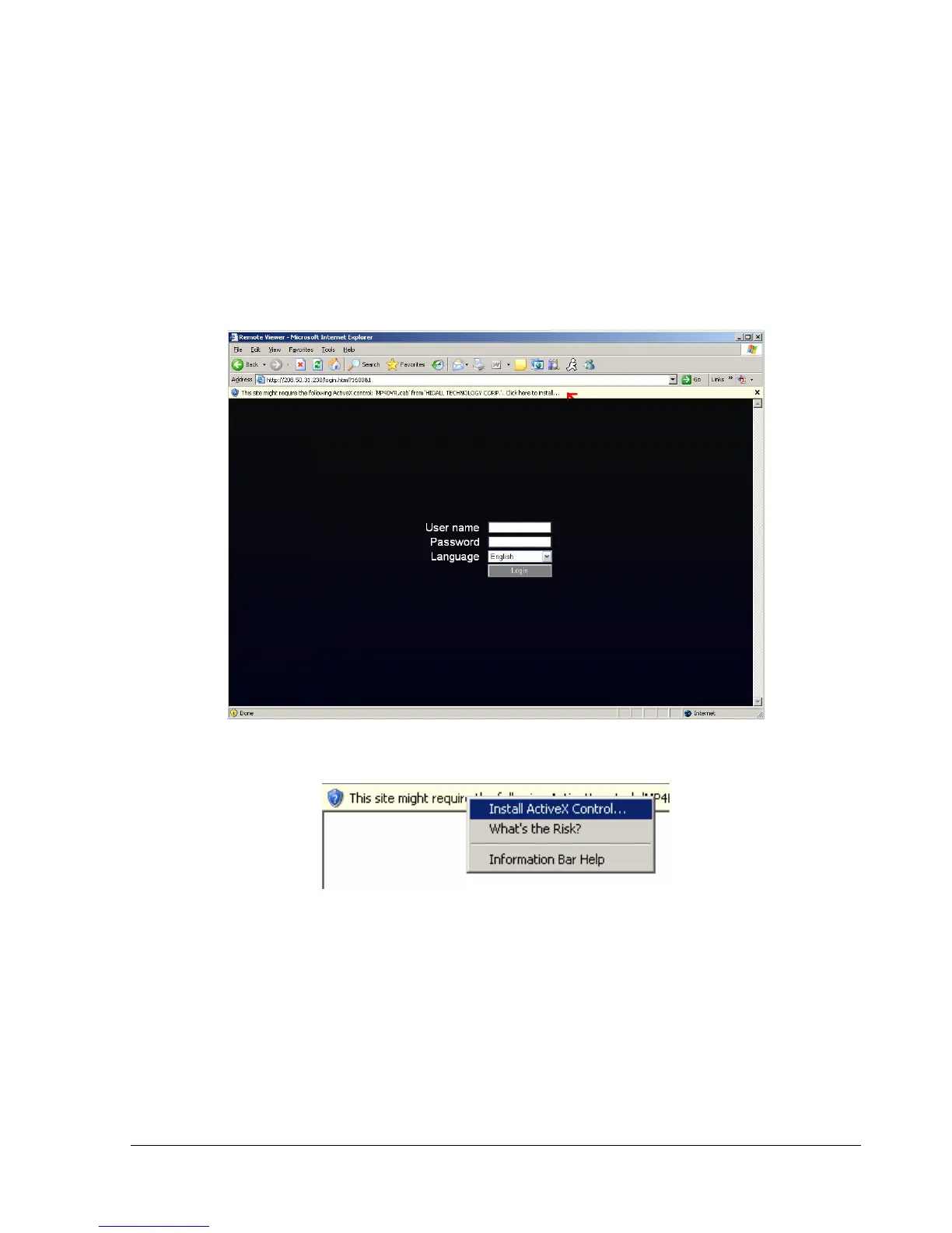 When you first connect to the DVR’s IP address, you should see a screen like the one below. If you do not