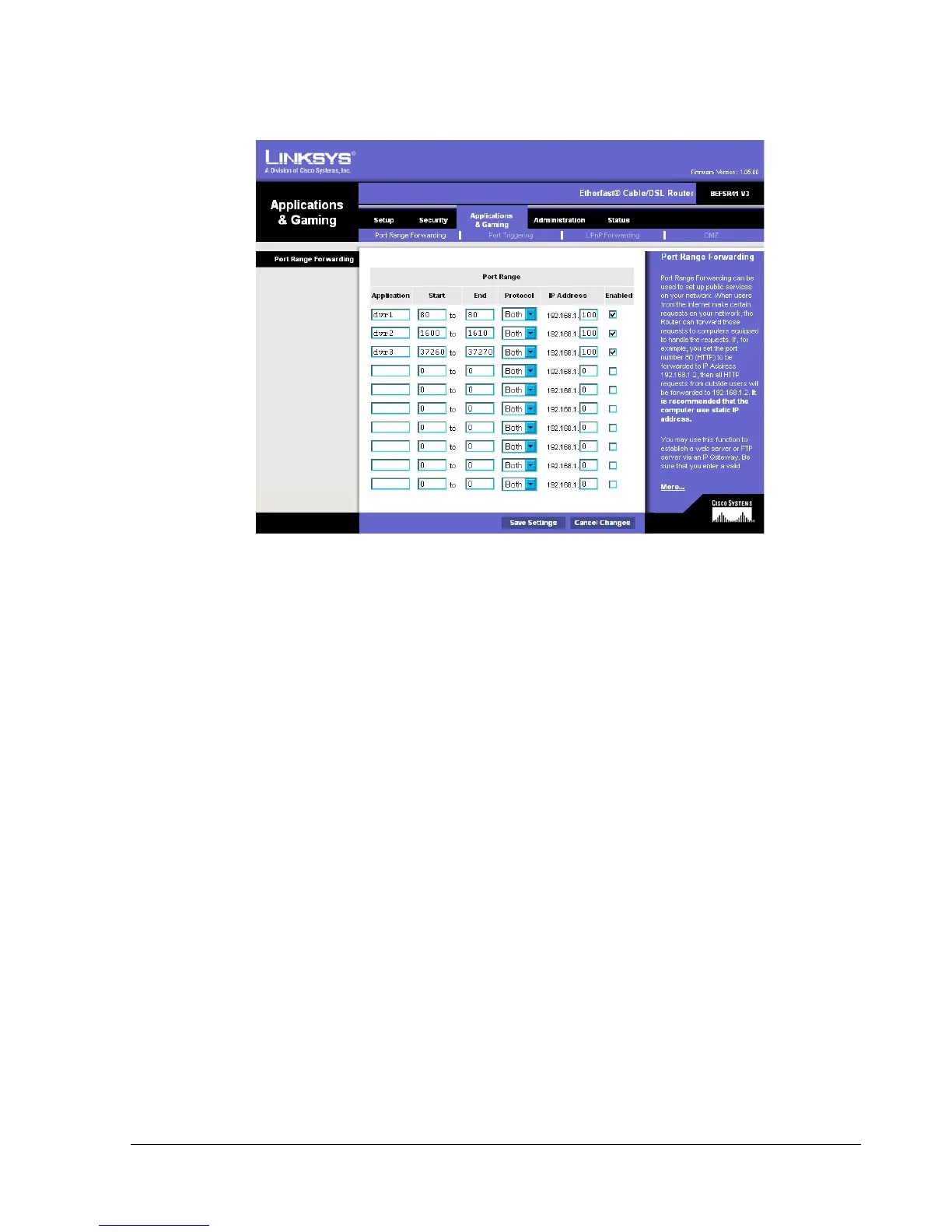 When finished making changes, click the Save Settings button to apply your changes or Cancel