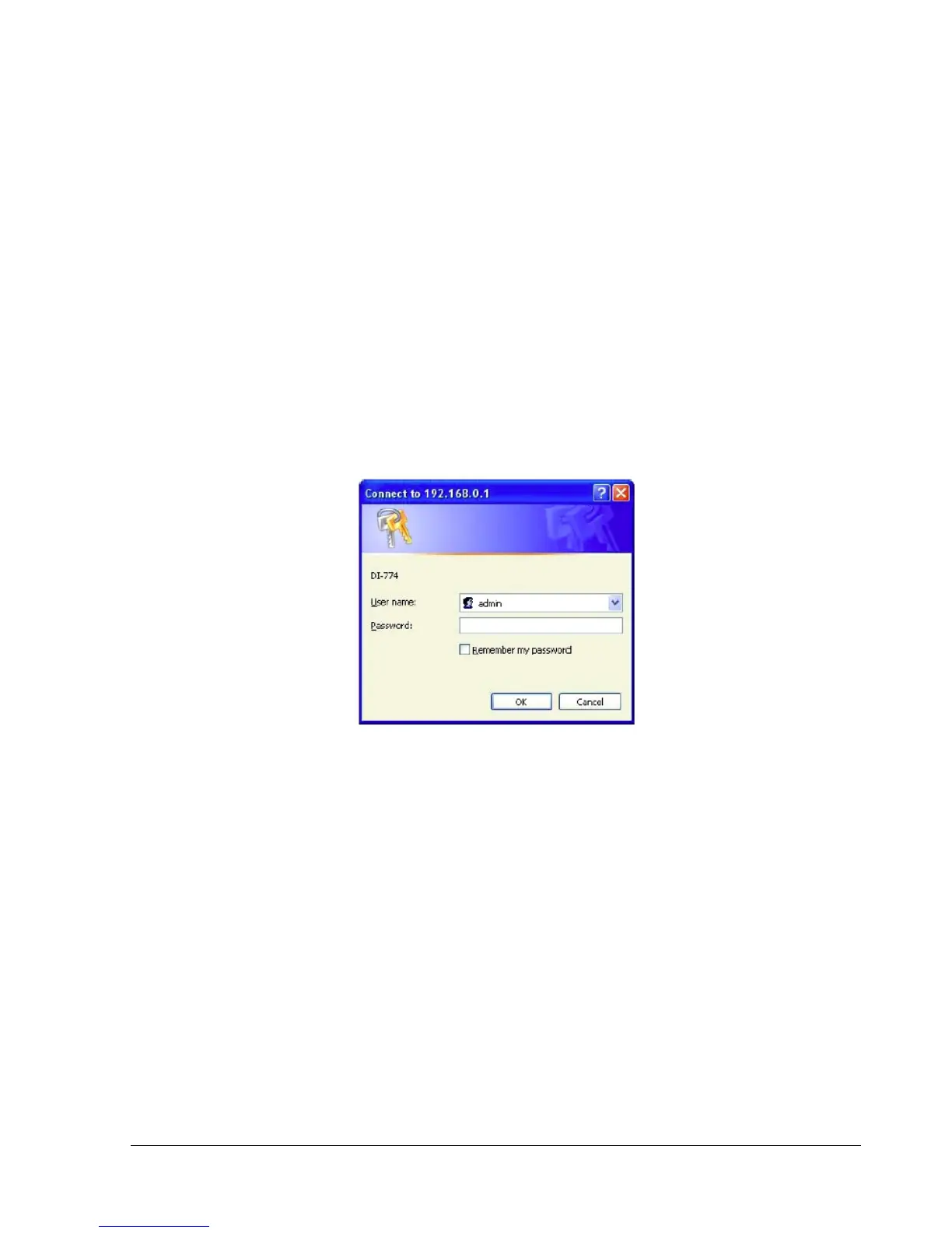 Type “admin” in the User Name field