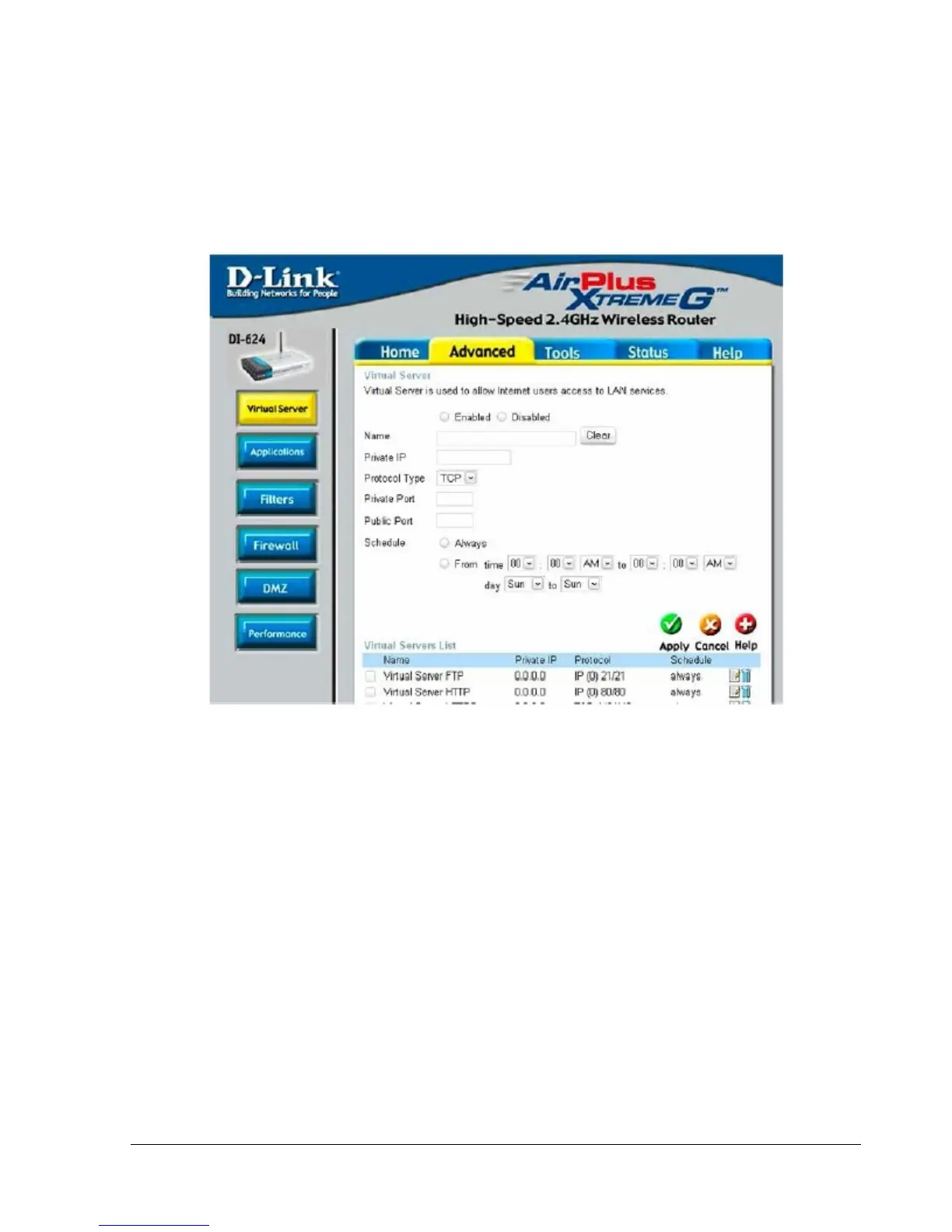 Schedule – The time period the virtual server will be active.