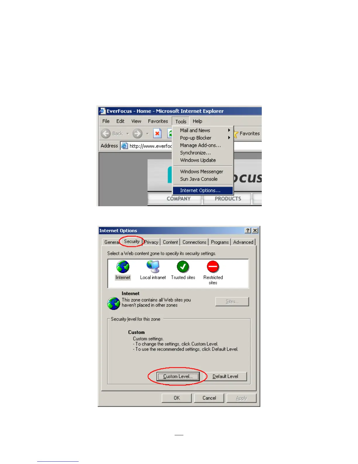 Click the Security tab at the top of the window, then choose Custom Level near the bottom.