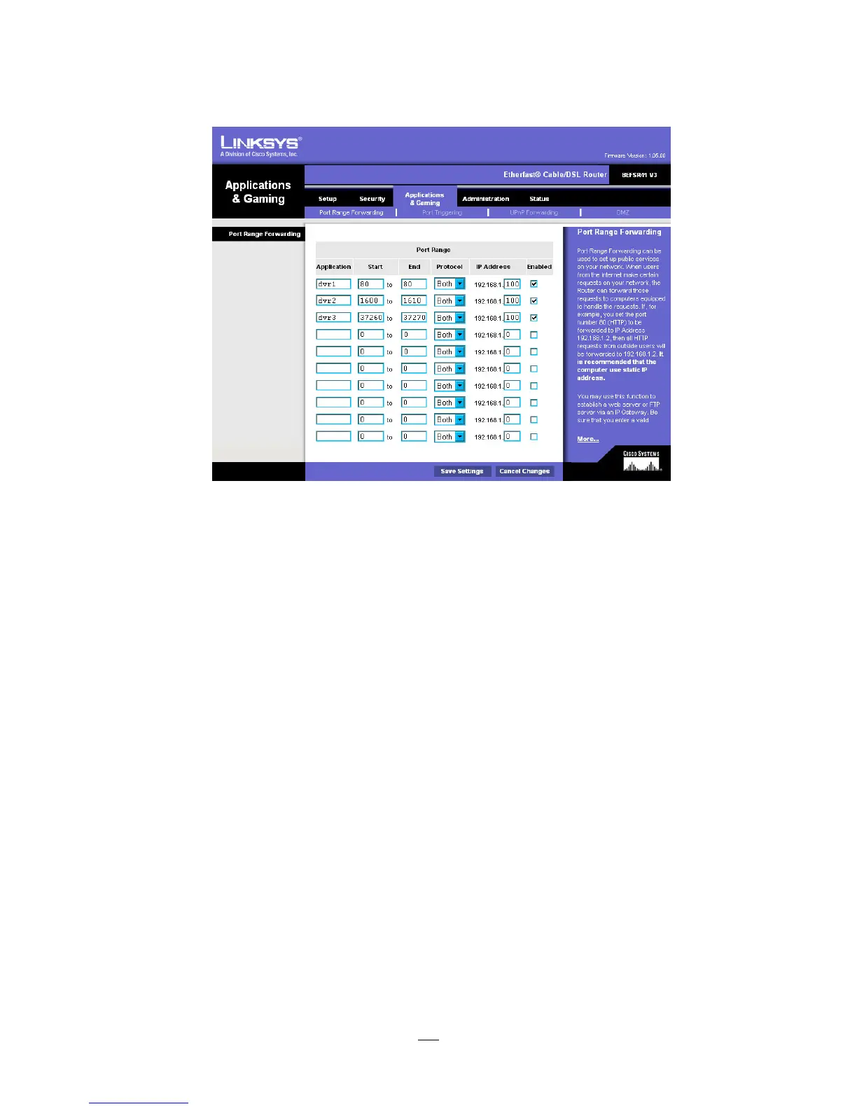 When finished making changes, click the Save Settings button to apply your changes or Cancel