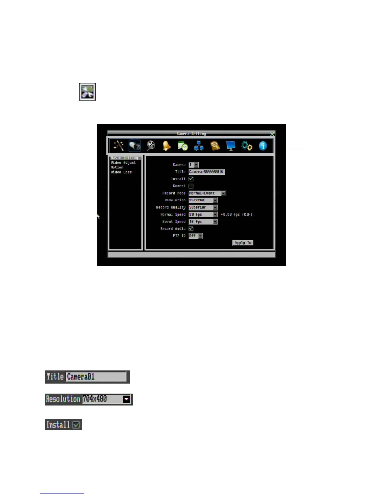 1. In section 1, there are ten setup options available. Move the mouse over an icon and click to select it.