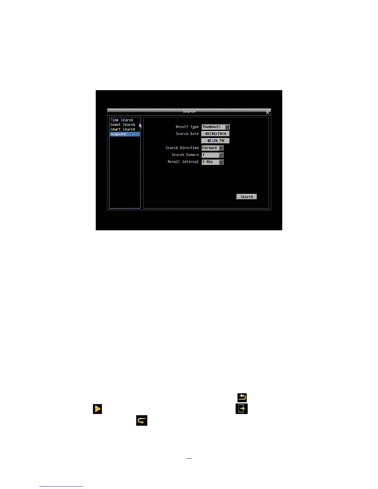 Press Search button to start Search. Thumbnails of the Snapshot will be displayed on the screen. First