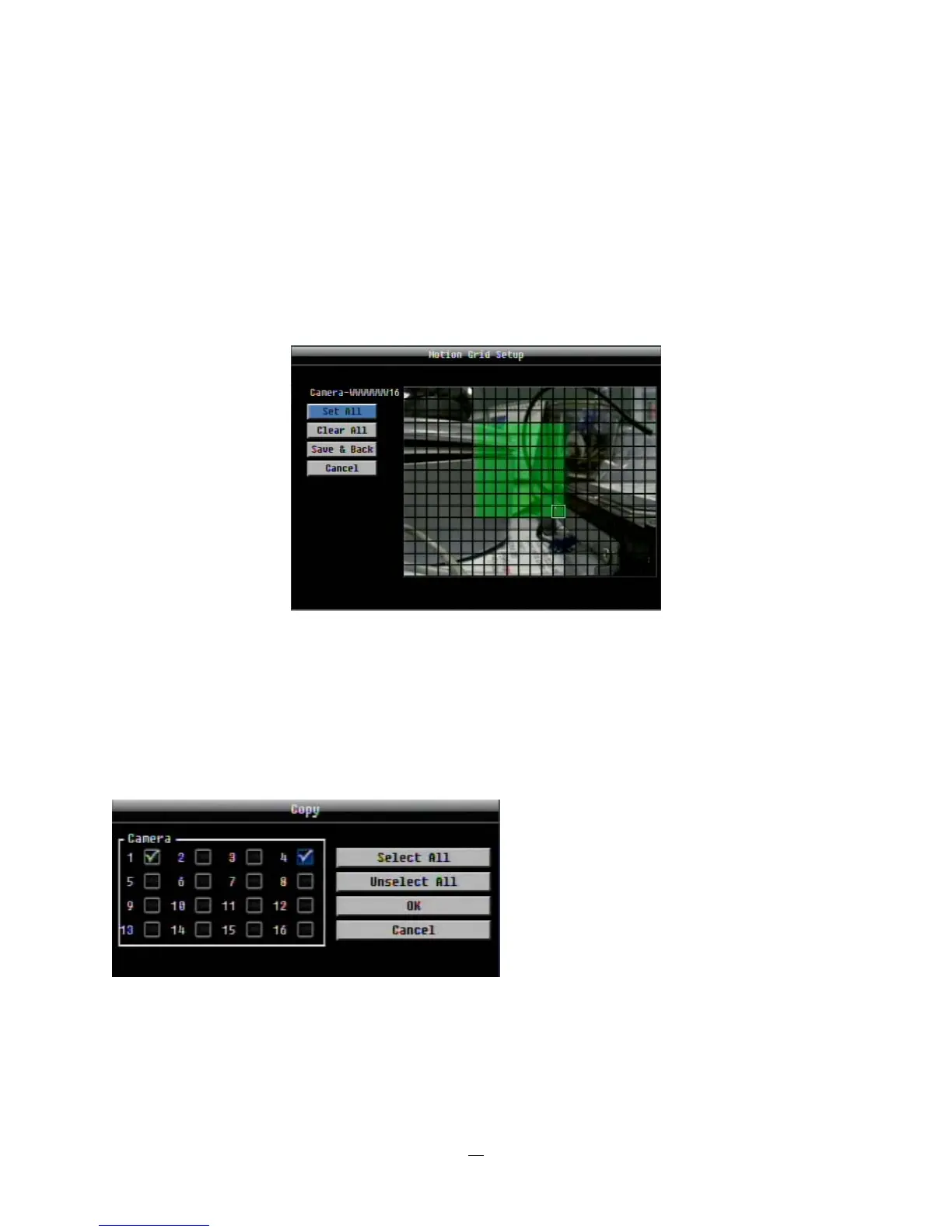 Apply To: This button can be used to copy the motion settings to other cameras. Select which cameras