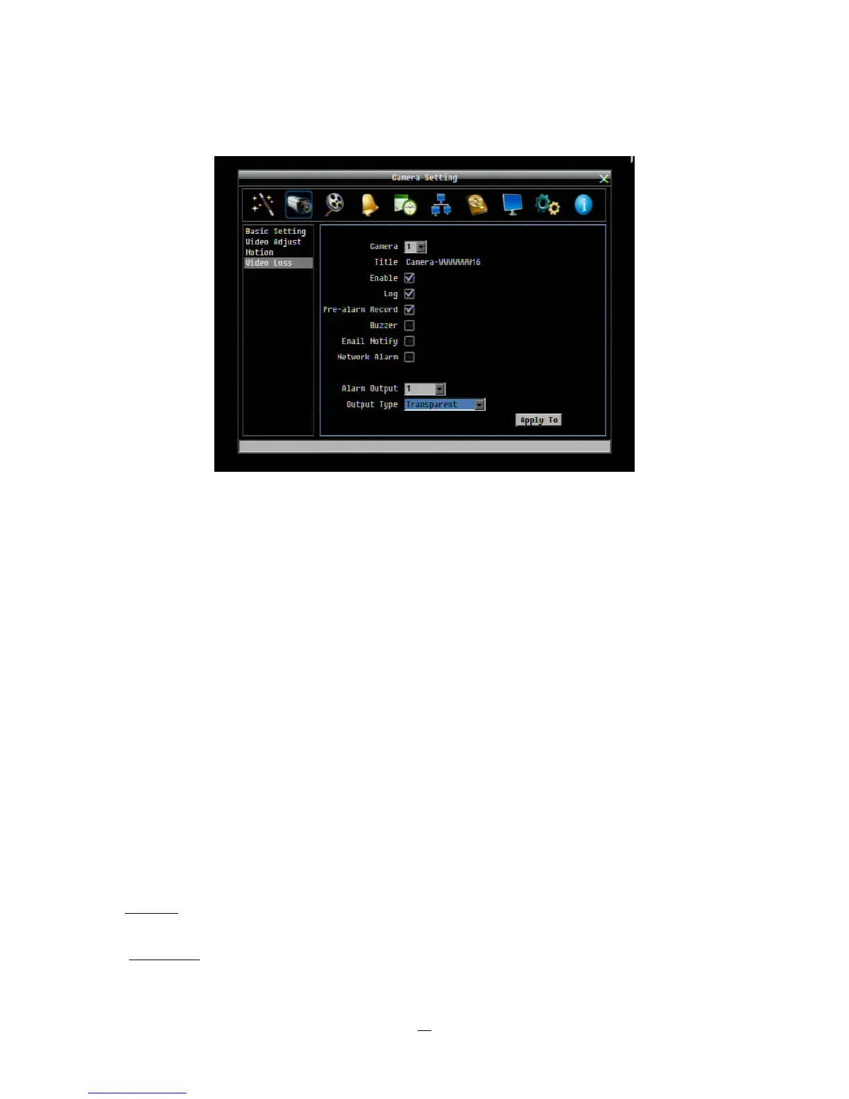 Buzzer: Check box to enable the buzzer when a video loss event occurs.