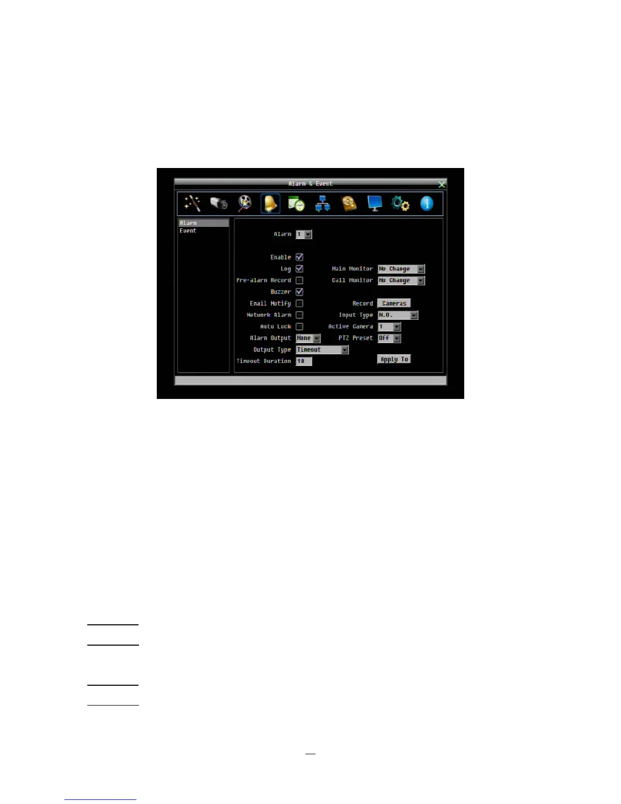 Buzzer: Check this box to enable the buzzer when an alarm occurs.