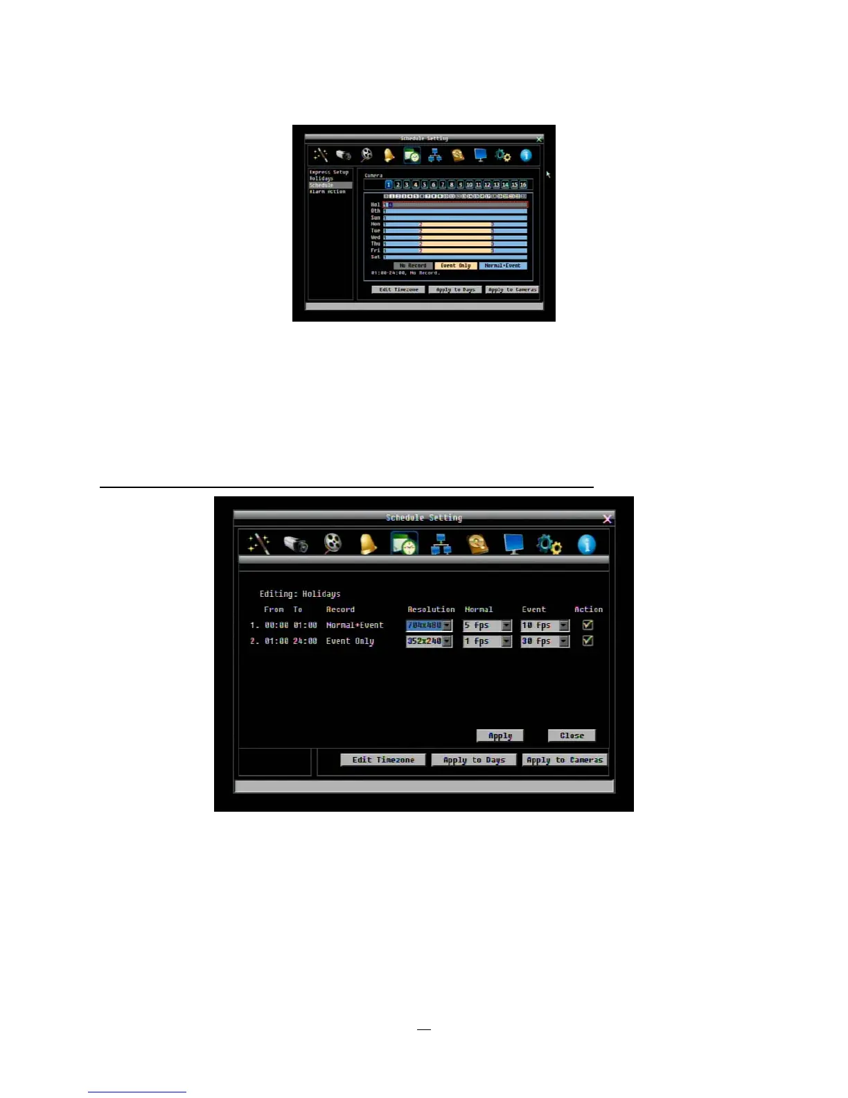 7. Changing recording mode (color) of a timezone: Use Right/Left arrow key to switch to the first block