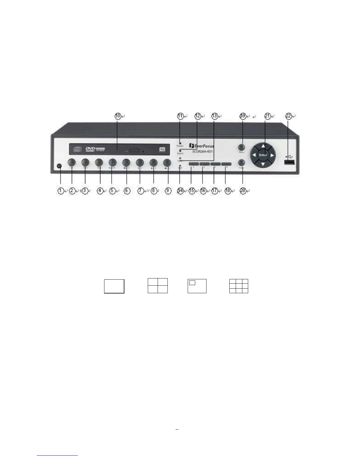 2) Live: Press this key to show live view. Press to exit from playback mode.