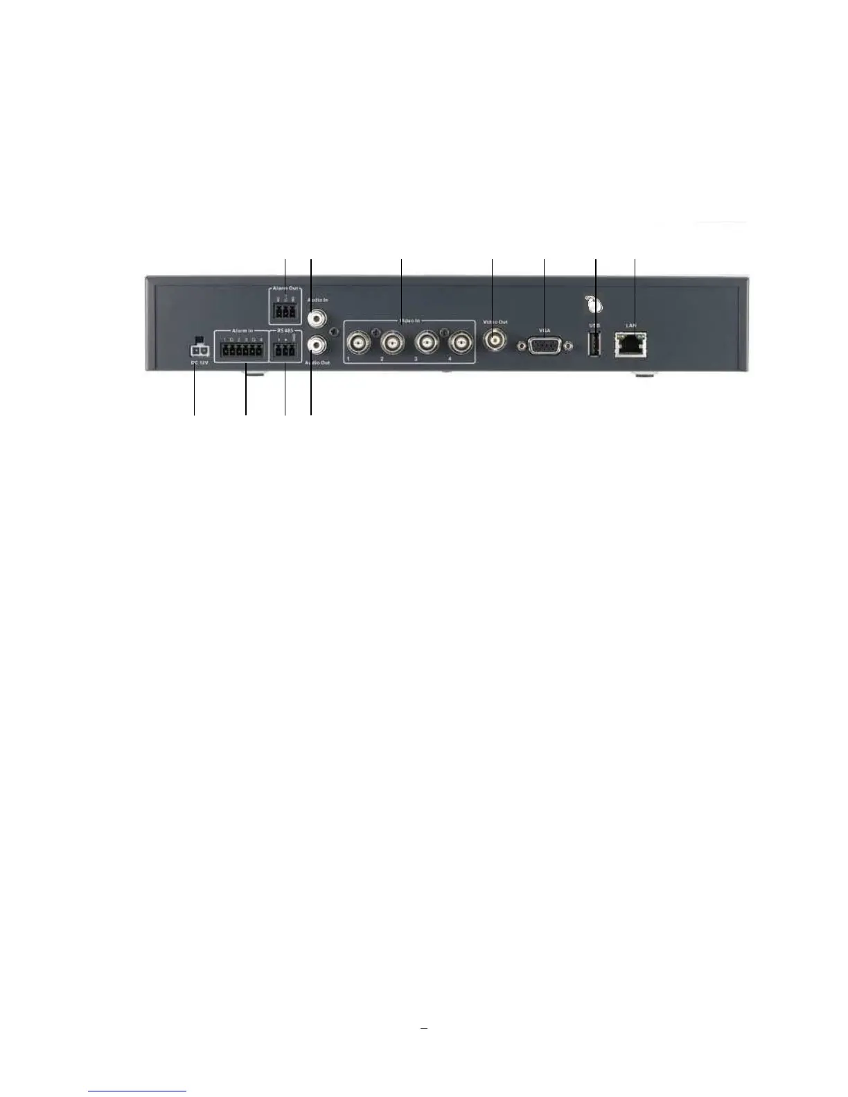 RS485 socket: For remote control via RS-485 keyboards and telemetry control for attached PTZ