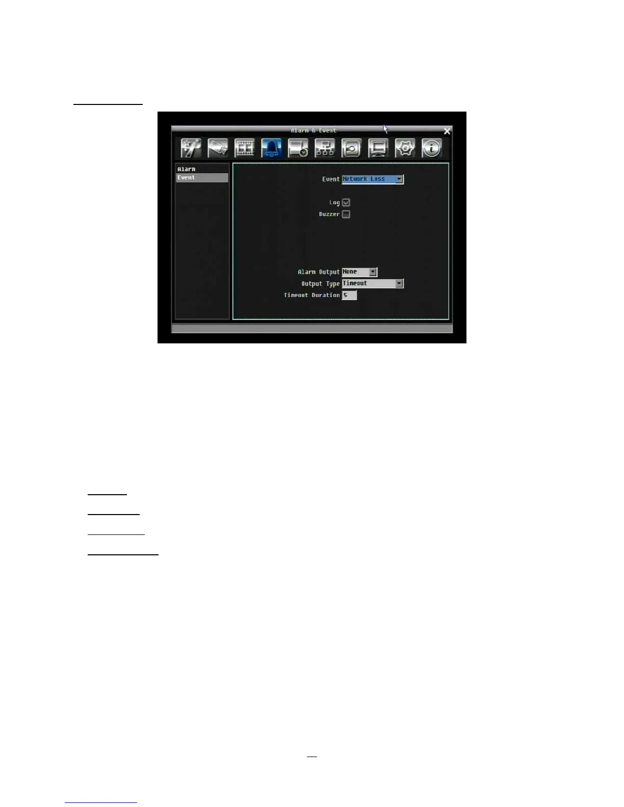Figure 4-17 Alarm & Event Menu – Event – Network Loss
