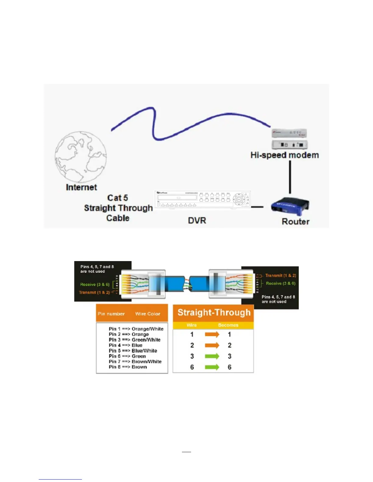 Straight Through Ethernet Cable Pin outs:
