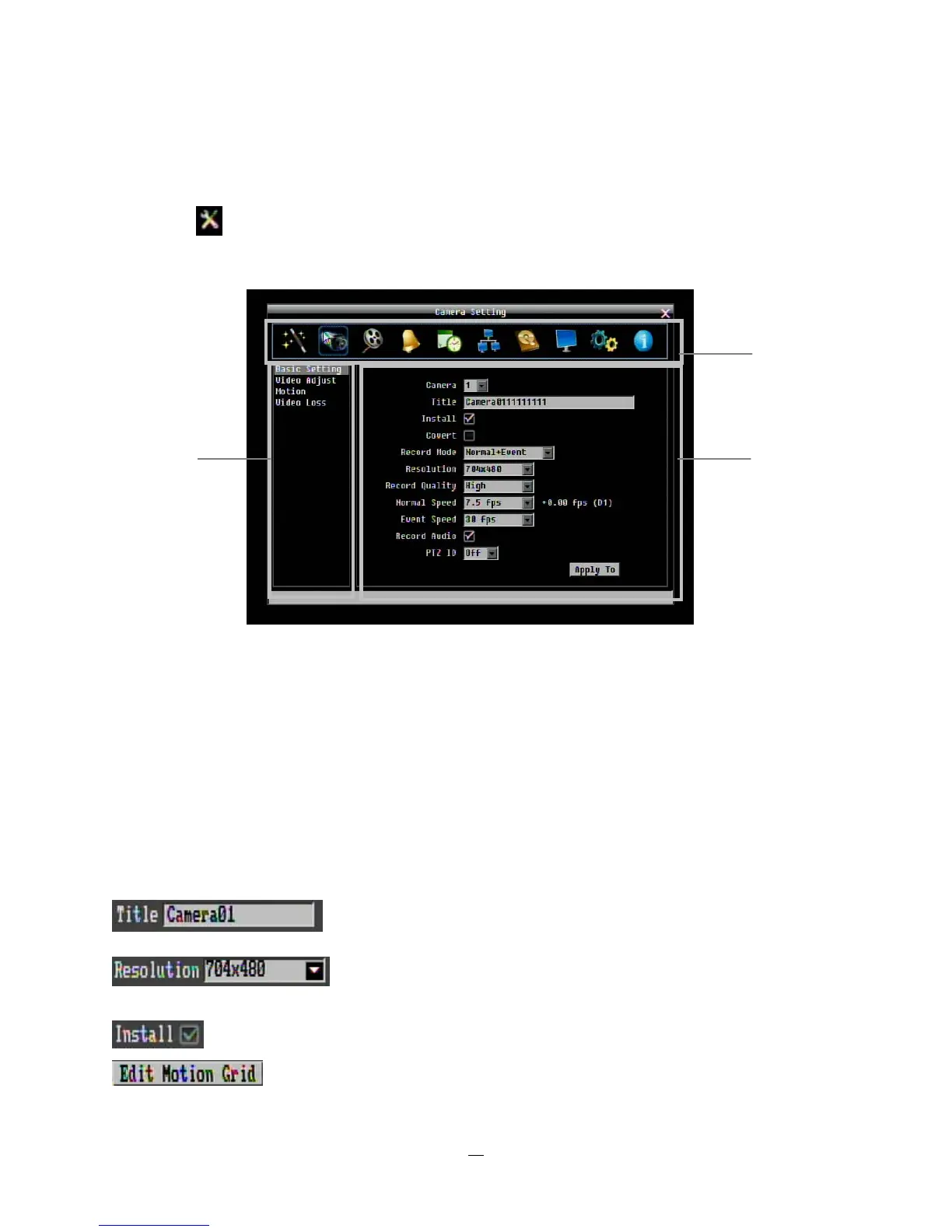 1. In section 1, there are ten setup options available. Move the mouse over an icon and click to select it.