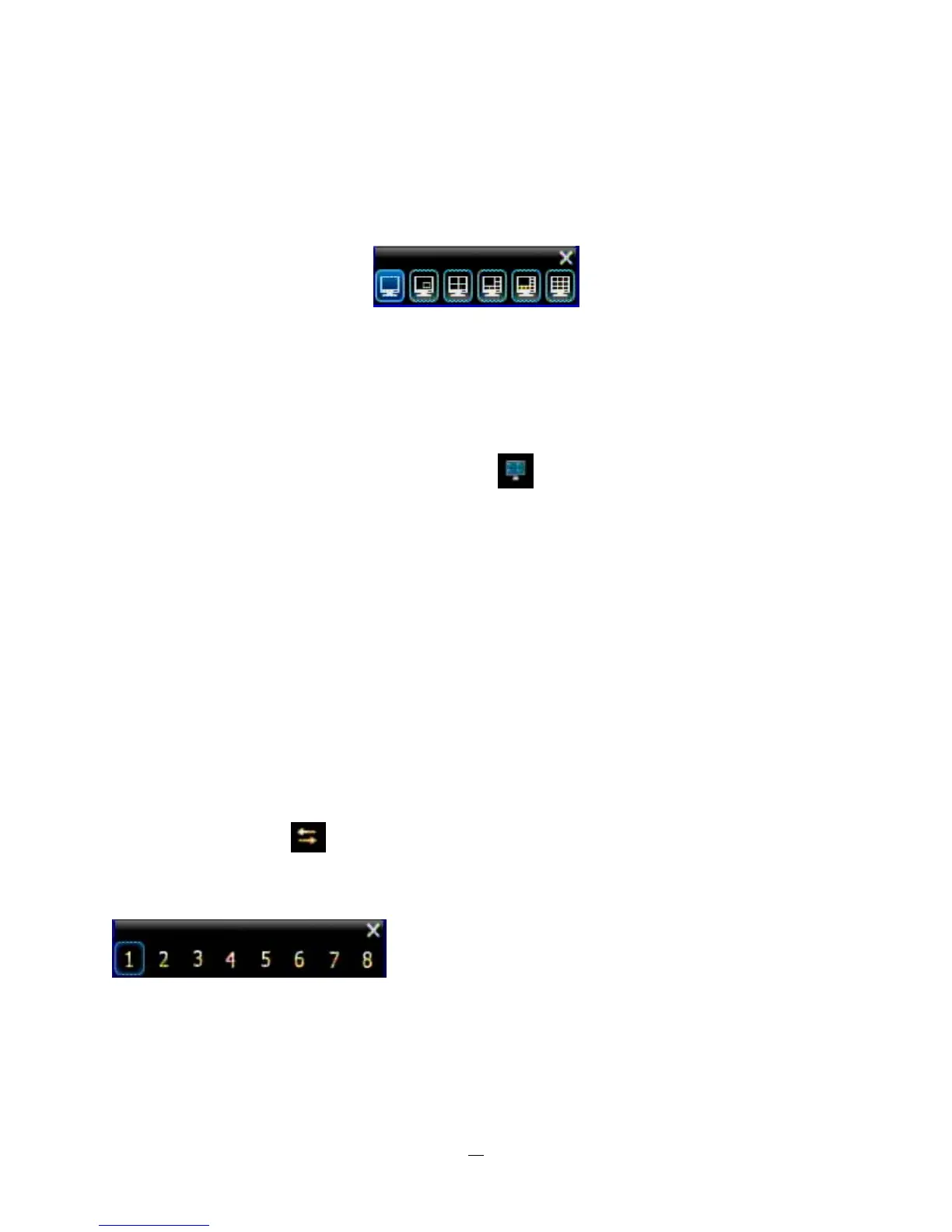 The DVR has several display modes available, depending on the number of cameras the DVR supports.