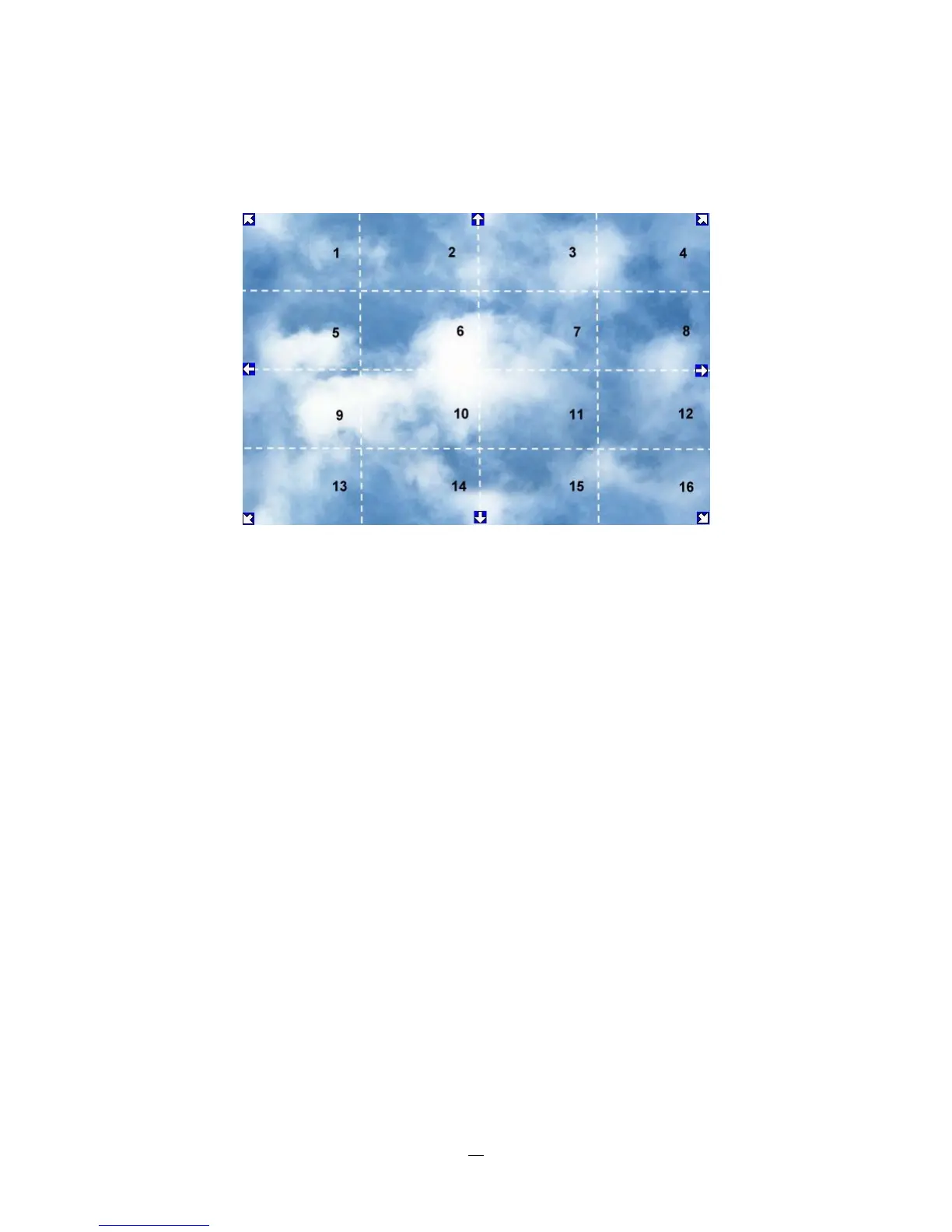 The screen is divided into a 4x4 grid. The function of each section is defined as below: