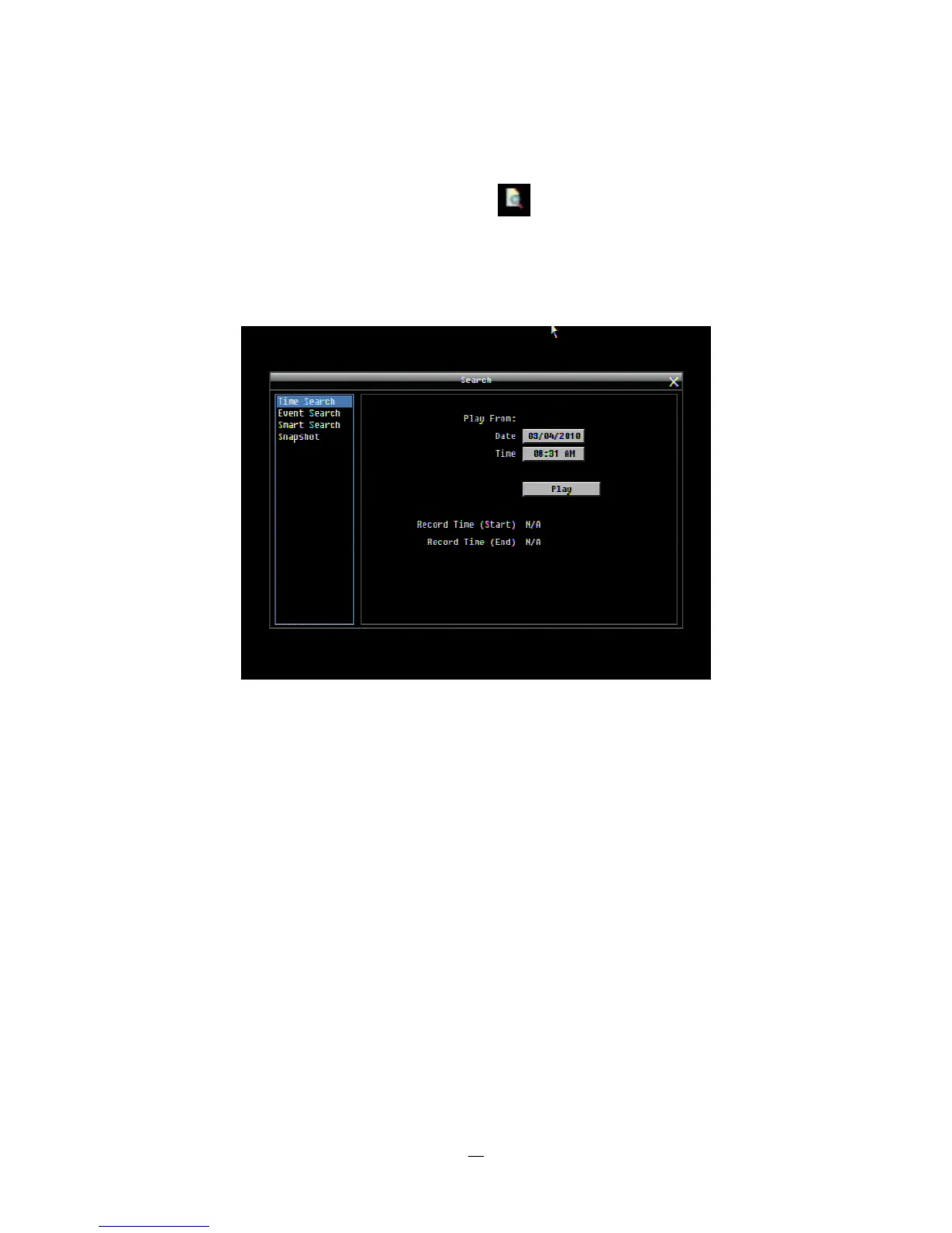 Play From: Select the time to begin the search by choosing the Date and Time.