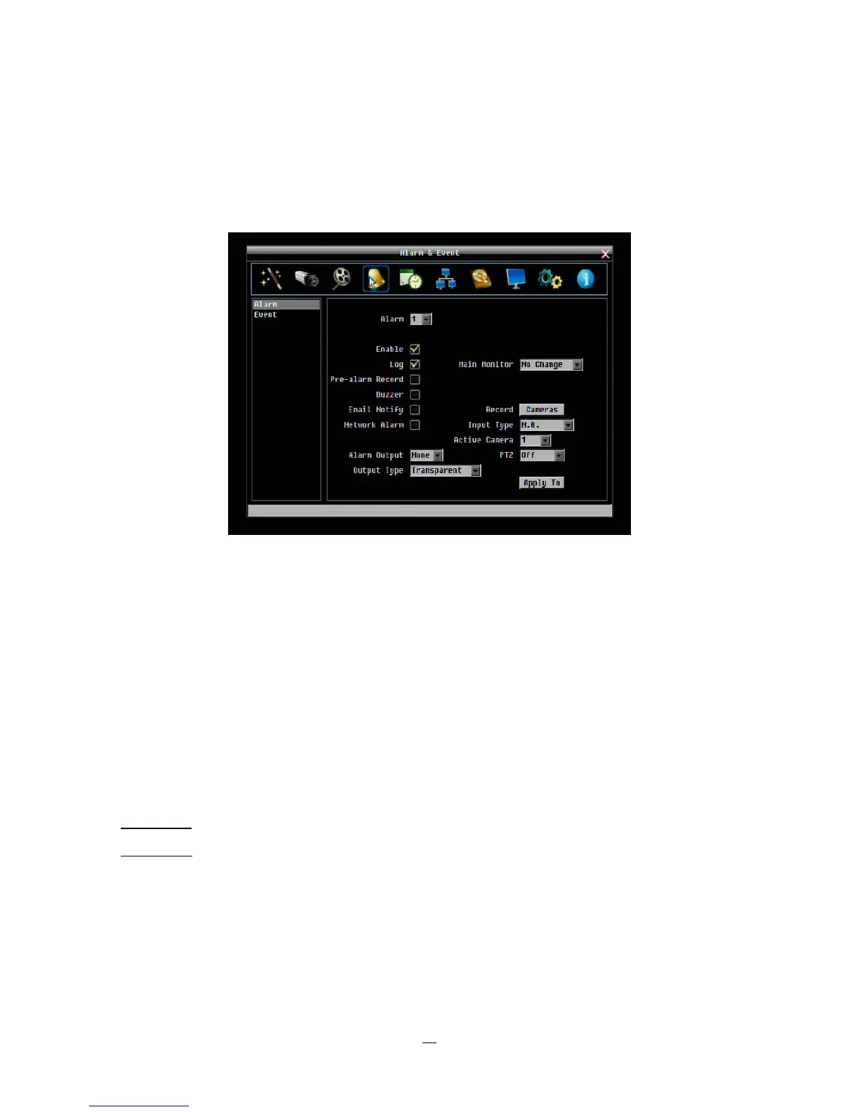 Buzzer: Check this box to enable the buzzer when an alarm occurs.