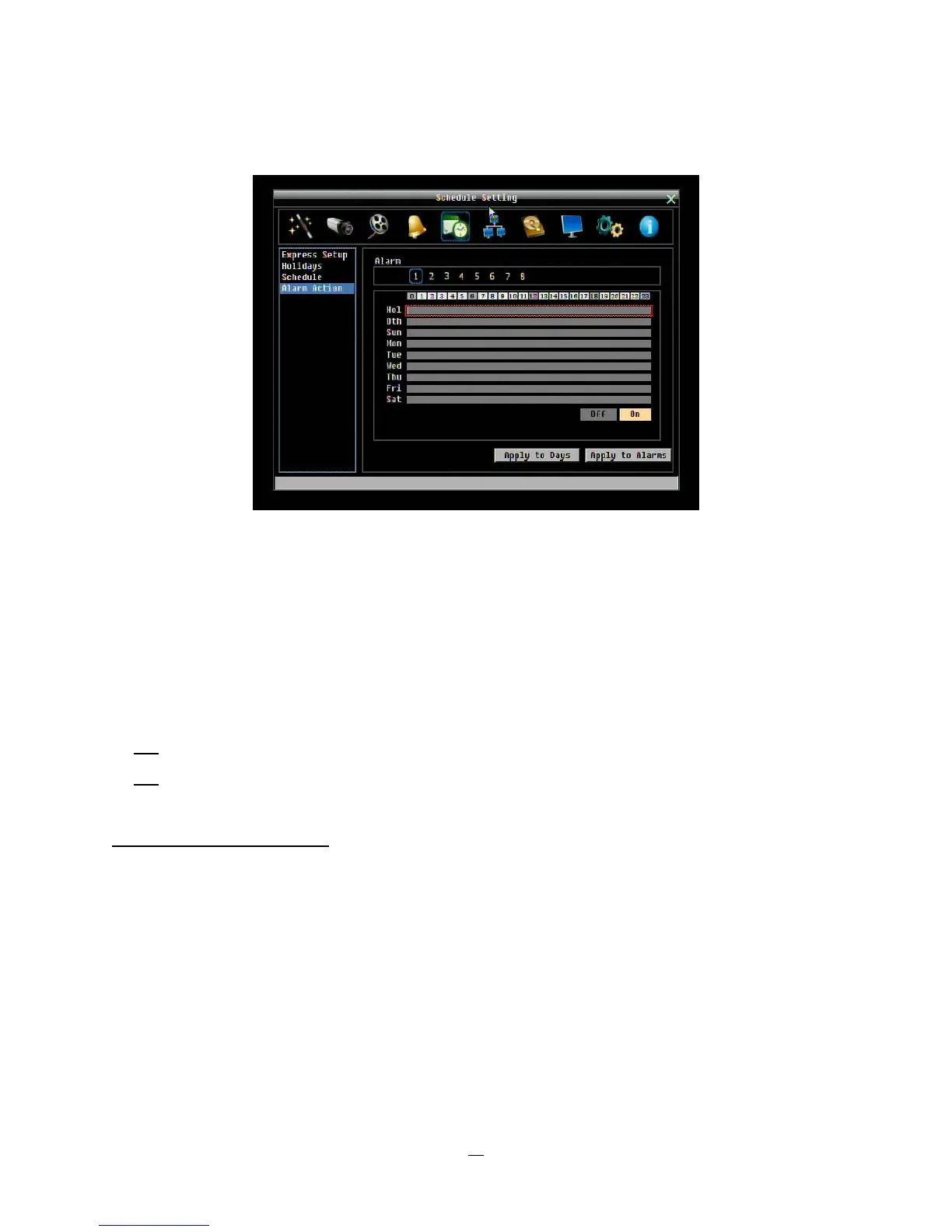 Alarm: Select a number to change the schedule for that alarm input trigger. Each alarm can be set on a 24