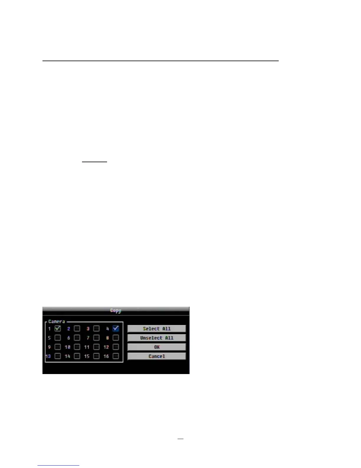 you wish to copy to. "Select All" selects all cameras, “Unselect All” deselects all cameras. Click “OK” to