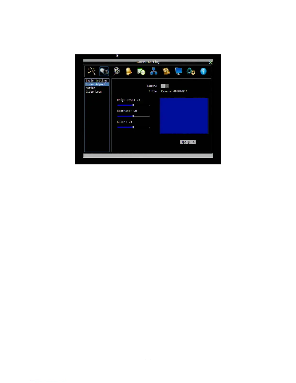 Apply To: This button can be used to copy the video settings to other cameras. Select which cameras you