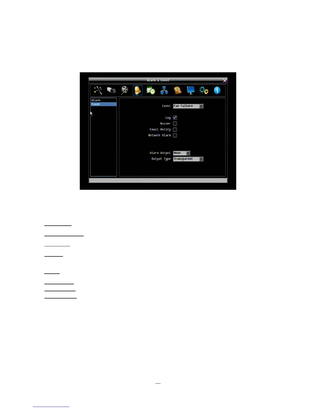 HD Failure: If DVR fails to detect the HDD on start up, the system will create an HD failure event.