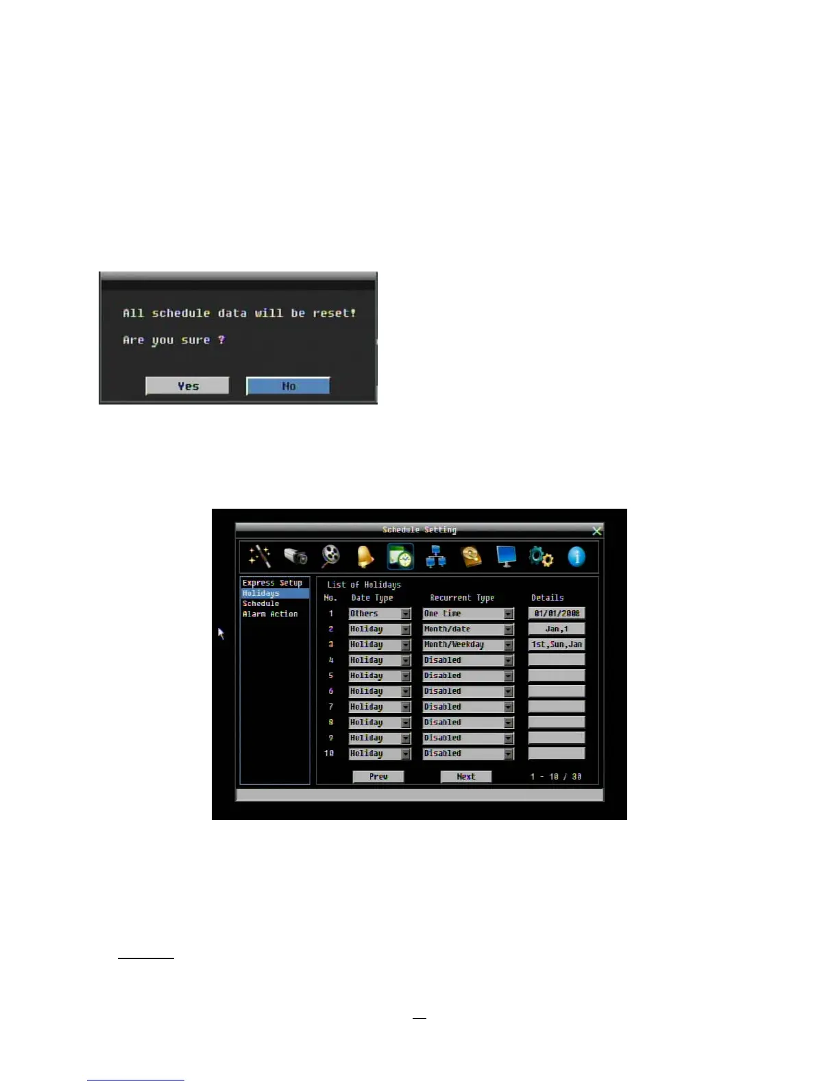 In addition to setting a weekly record schedule, user can also schedule a specific recording configuration