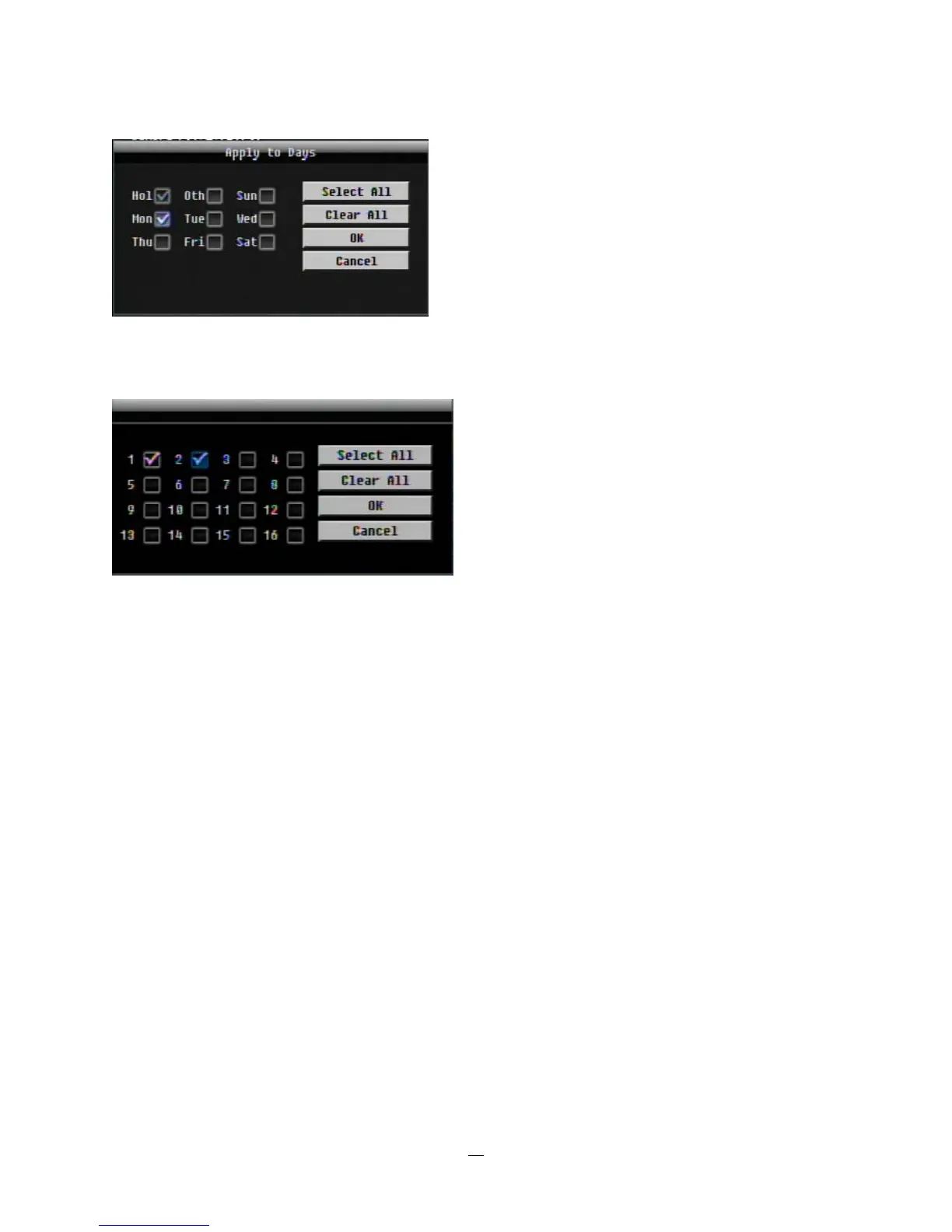 Apply to Cameras: This button can be used to copy schedules to other cameras. Select which cameras