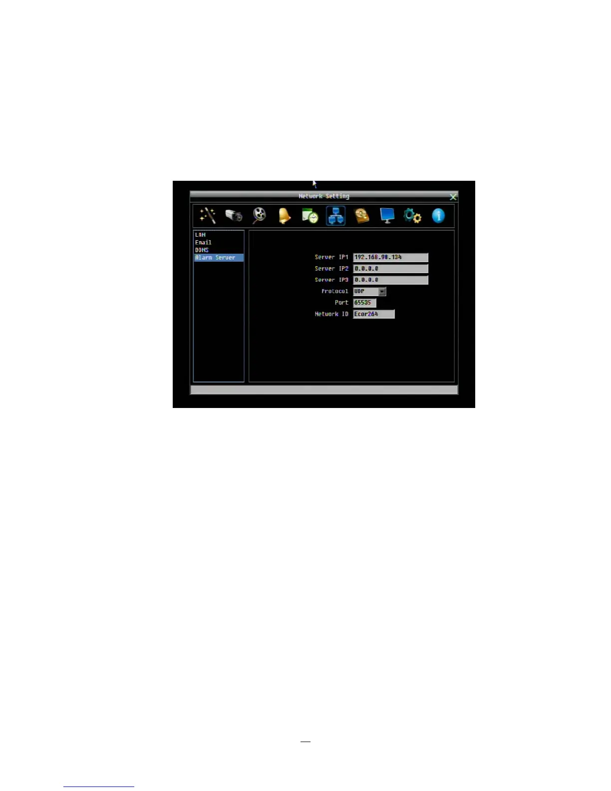 Figure 4-29 Network Menu – Alarm Server