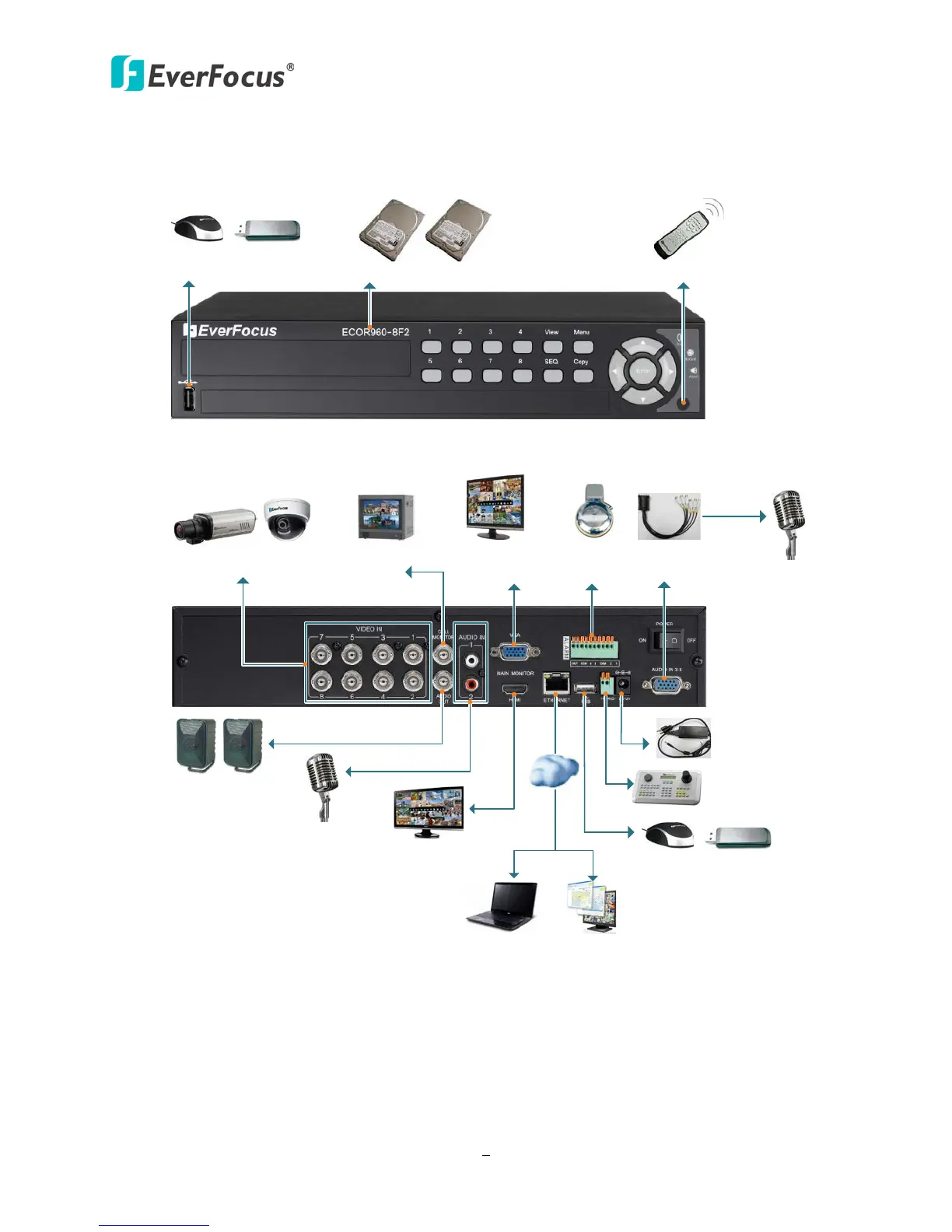 * This diagram uses ECOR960 8F2 as an example. The ECOR960 4F2 only has 4 Video Inputs, 4