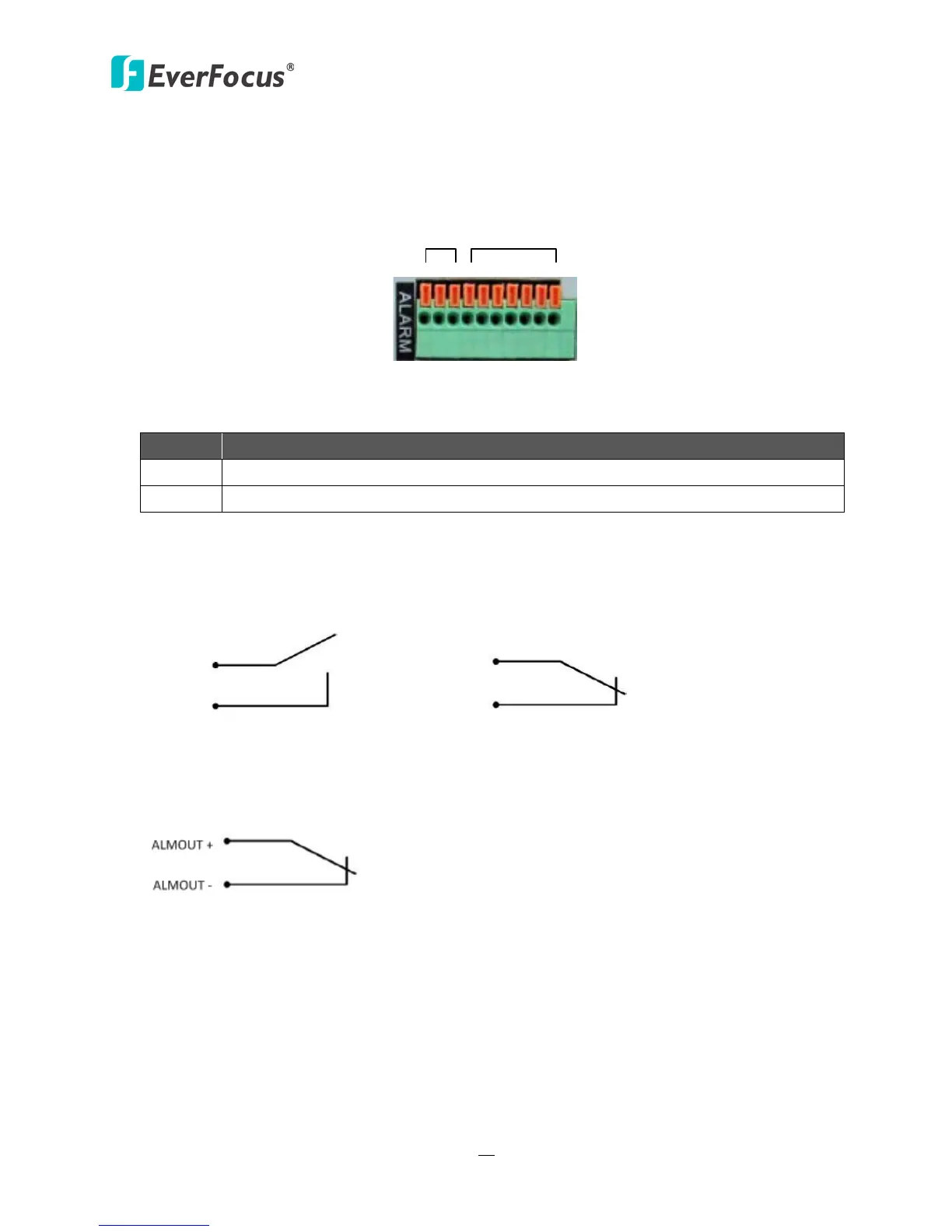 Alarm Input with N.O. contact in idle state Alarm Input with N.C. contact in idle state