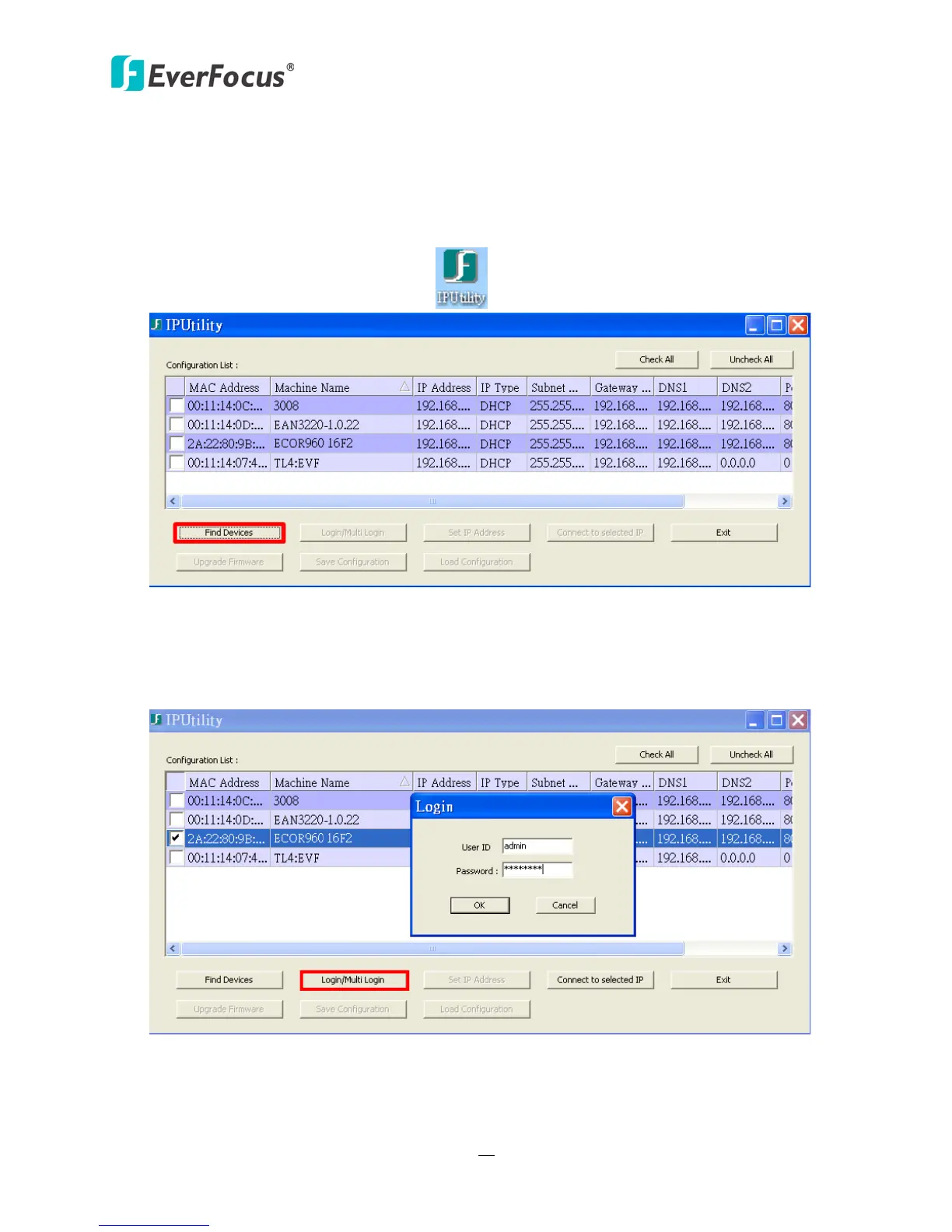 program, which can be downloaded from EverFocusWebsite: http://www.everfocus.com/tools.cfm.