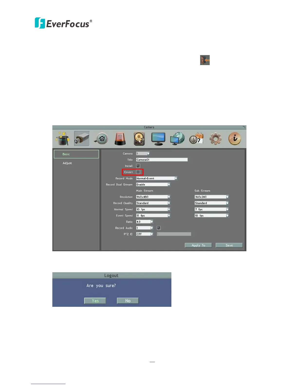 click the Logout icon, the camera streams will be hidden on the Live View / Sequence Mode.