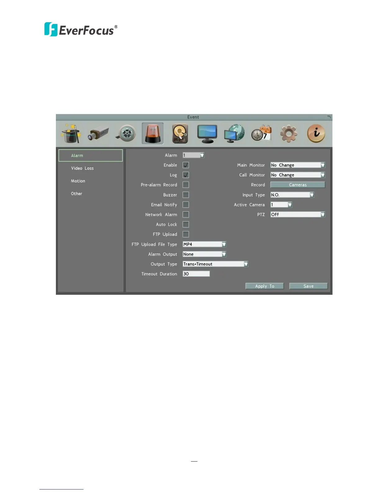 event occurs. This feature works with EverFocusCMS software. You will need to configure